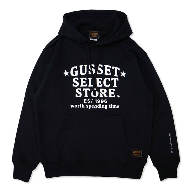 Gusset 30周年を記念して製作したスウェットパーカー。立体的なフードを持たせた、ややざっくりとしたサイズのシルエットが特徴的です。表の生地感はふっくらとしたものに対し、裏側はパイルで肌触りの良い仕上がりです。 NO. : NE-G3H COLOR : BLACK QUALITY : COTTON 100%
