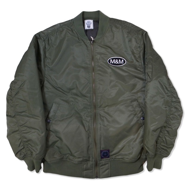 表地にボリューム感のあるナイロンを使用した、中綿入りフライトジャケット。フロントにはロゴワッペンを配置し、バックにはステンシル調のロゴタイプをプリント。両袖リブにも☆フチ刺繍を施したデザイン。着まわし易いアイテムです。 NO. : 25MMJ05 COLOR : OLIVE QUALITY : SHELL : NYLON 100% LINING : POLYESTER 100%