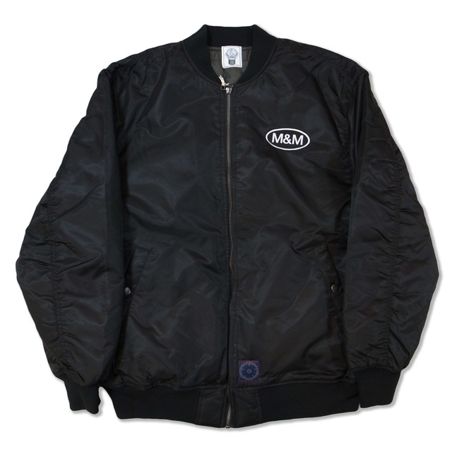 表地にボリューム感のあるナイロンを使用した、中綿入りフライトジャケット。フロントにはロゴワッペンを配置し、バックにはステンシル調のロゴタイプをプリント。両袖リブにも☆フチ刺繍を施したデザイン。着まわし易いアイテムです。 NO. : 25MMJ05 COLOR : BLACK QUALITY : SHELL : NYLON 100% LINING : POLYESTER 100%