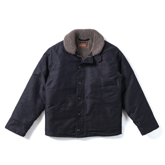 寒冷地用の防寒システムの名称N-1 デッキジャケット。タウンユース向けに型紙の構造線をモディファイさせ、ゲルガらしいディティールでまとめ上げています。表地にはミリタリーコードジャングルクロスを使用。高密度なコットンクロスで耐久力と耐風性、多少の防水性を持ちます。身頃裏地にはアルパカ混の柔らかく温かみのあるボア素材。 NO. : GR-J-160 COLOR : BLACK QUALITY : COTTON 100% LINING : AC 50% ALPACA 50% SLEEVE LINING : COTTON 58% RAYON 42