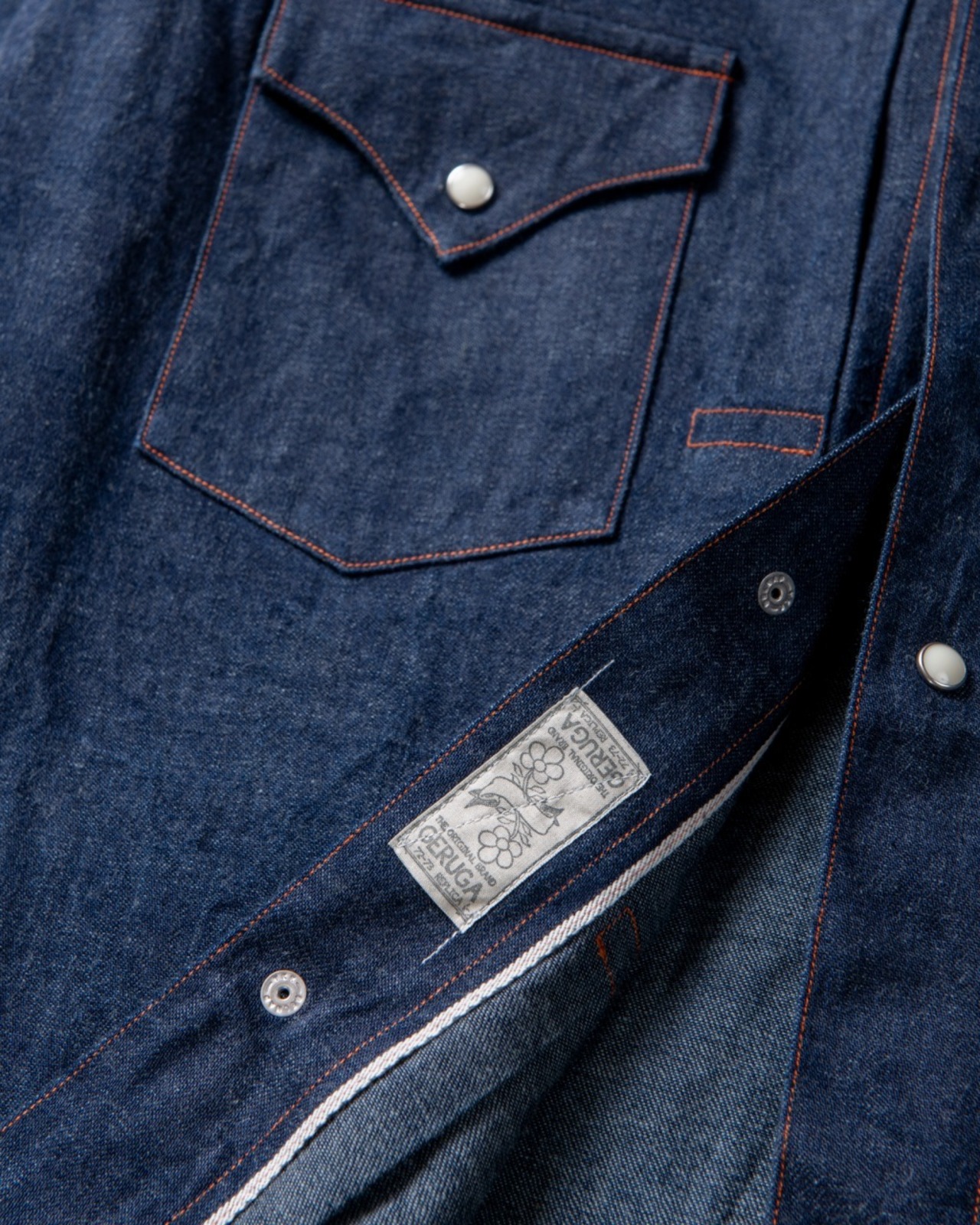 今だからこそ、ウエスタンシャツを着よう。ヴィンテージデニムジャケットのディティールとウエスタンシャツのディティールをGERUGAの目線でミックスしたオリジナルウエスタンシャツ。ややゆとりのあるシルエットを持たせています。着込む程に柔らかさと色落ちで変化が楽しめます。