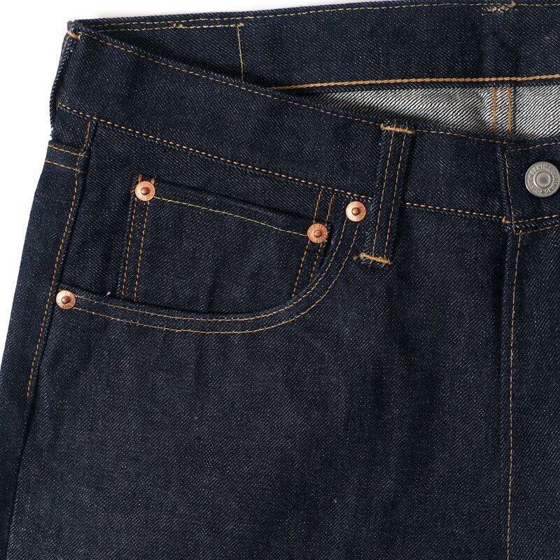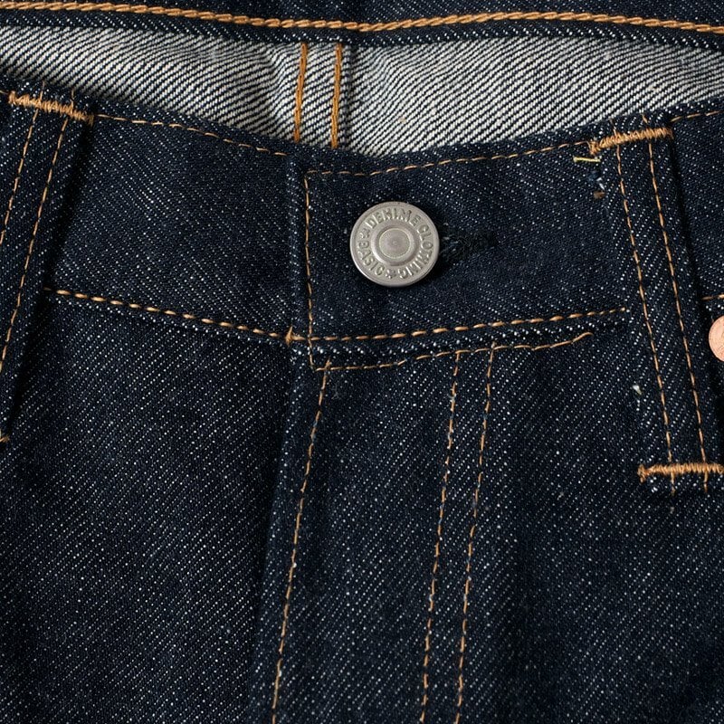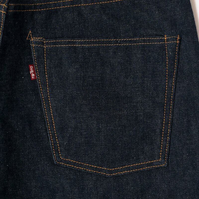 裾にかけて綺麗に細くなるシルエットは、1960年代、ジーンズがカジュアルウェアとして脚光を浴びた時代に生まれたもの。そんなベーシックで普遍的なシルエットがこのBIGEモデルです。DENIMEらしい紙タグの風合いや縫製糸の色使い、ピスネームやボタンもすべて創業時を再現するべく、新たに生産しました。