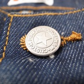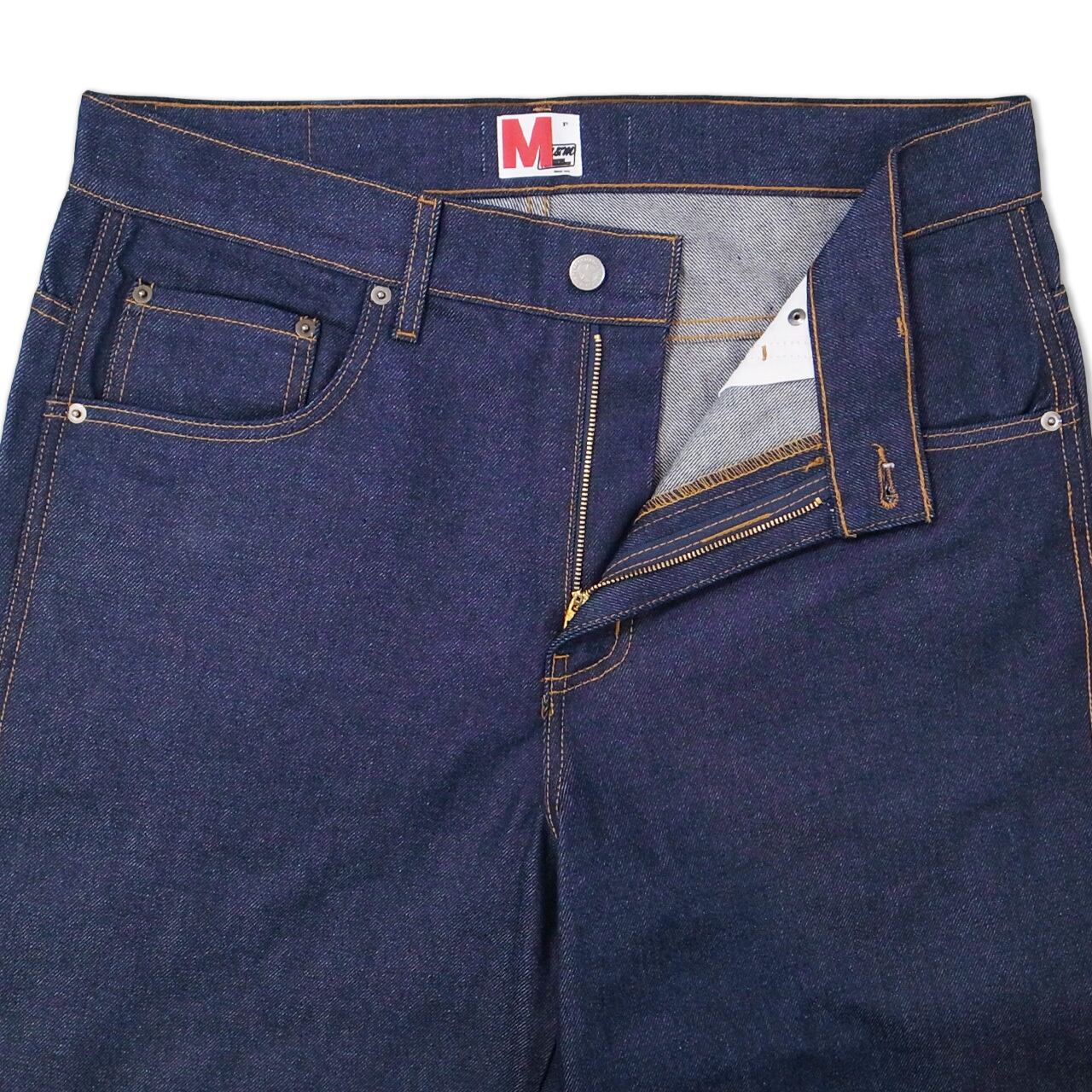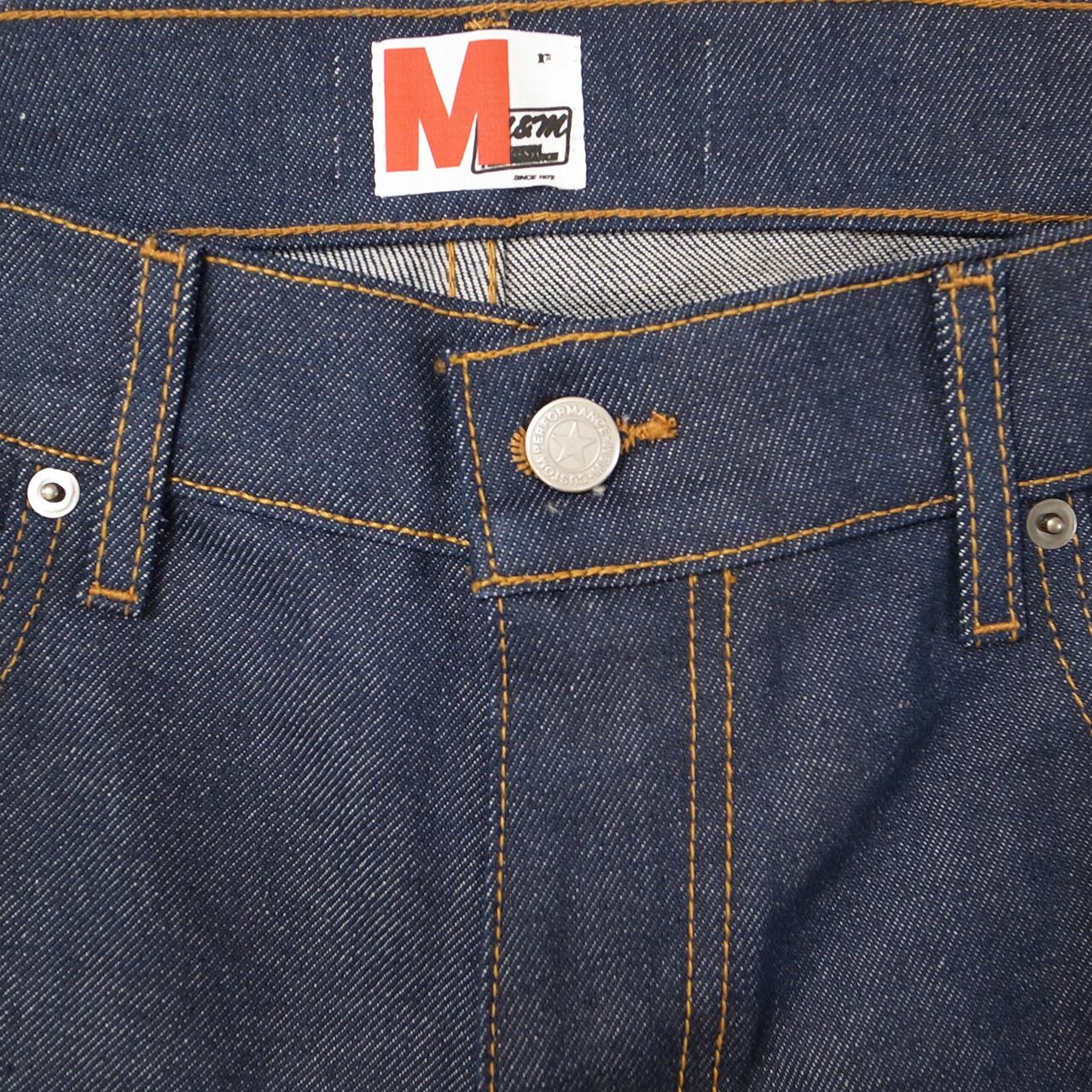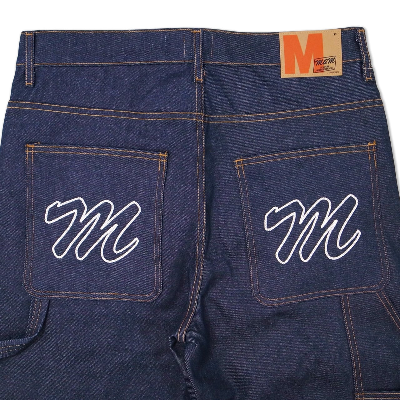 5ポケットのペインタージーンズ。ルーズストレートのバギーフィットシルエットで、スケールポケットやハンマーループなど、実用的なギミックが盛り込まれている。後ポケットにはmmチェーン刺繍が配置されたデザイン。
