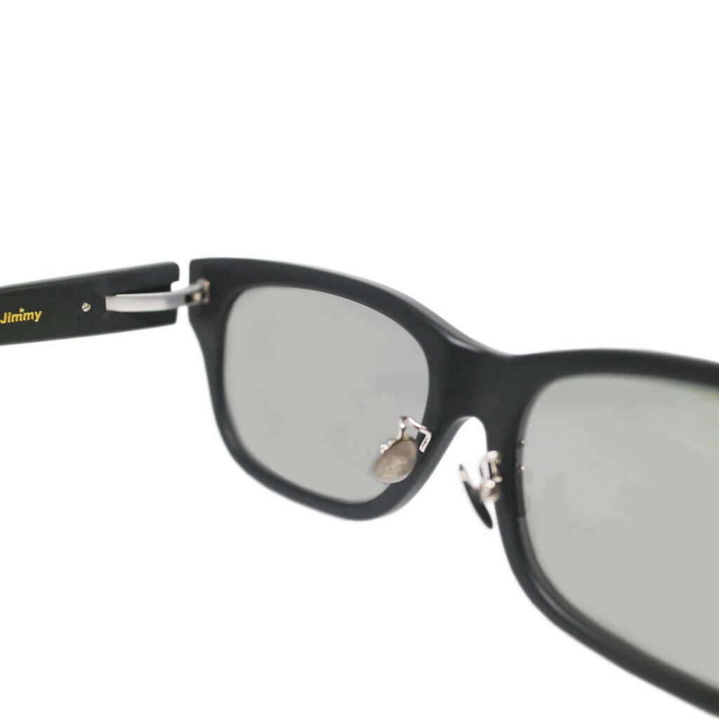 見た目の重厚感とは裏腹に、板バネ丁番を採用しているので高い着用感の良さも魅力のモデルで、「JIMMY2」はテンプル外側にブランドロゴを配置し、サイドからの印象をアップデートしました。