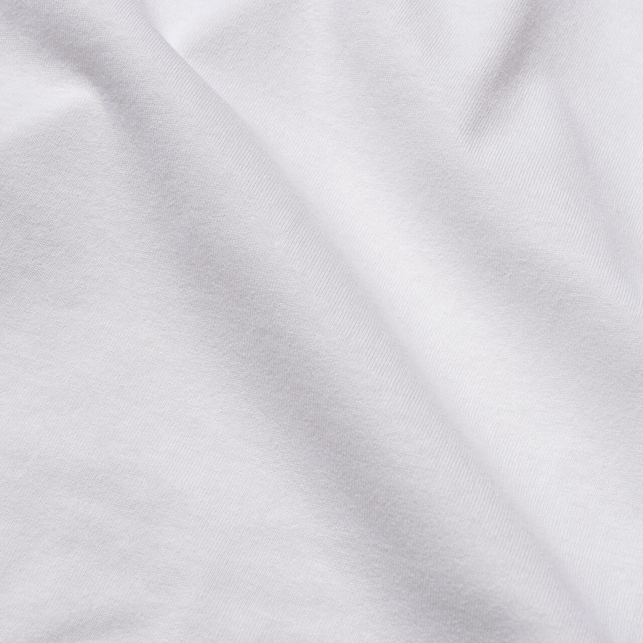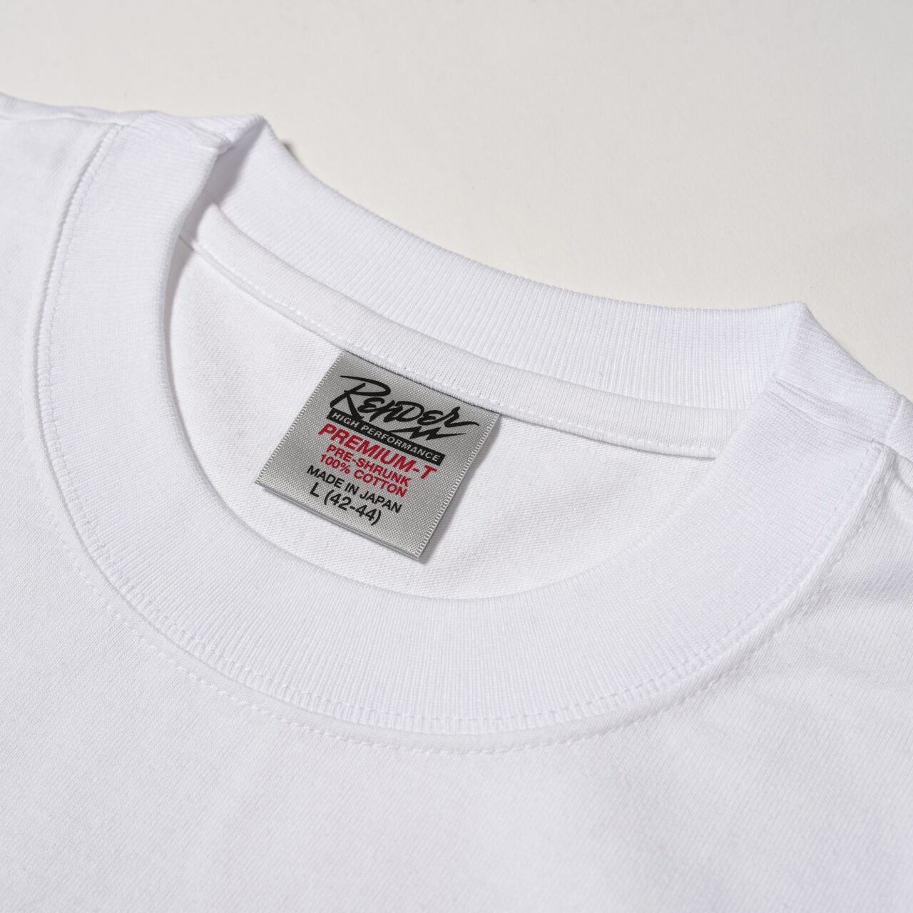 染色整理工程では高温スチームで蒸かしながらセットすることで、素材に膨らみを持たせて、ヴィンテージ感のある面構えとドライタッチ感を生み出しています。首ぐりのフライスも度詰め引き揃え加工を施し耐久性に優れています。袖口まわりの始末はシングルステッチ、裾回りの始末はダブルステッチ仕様。