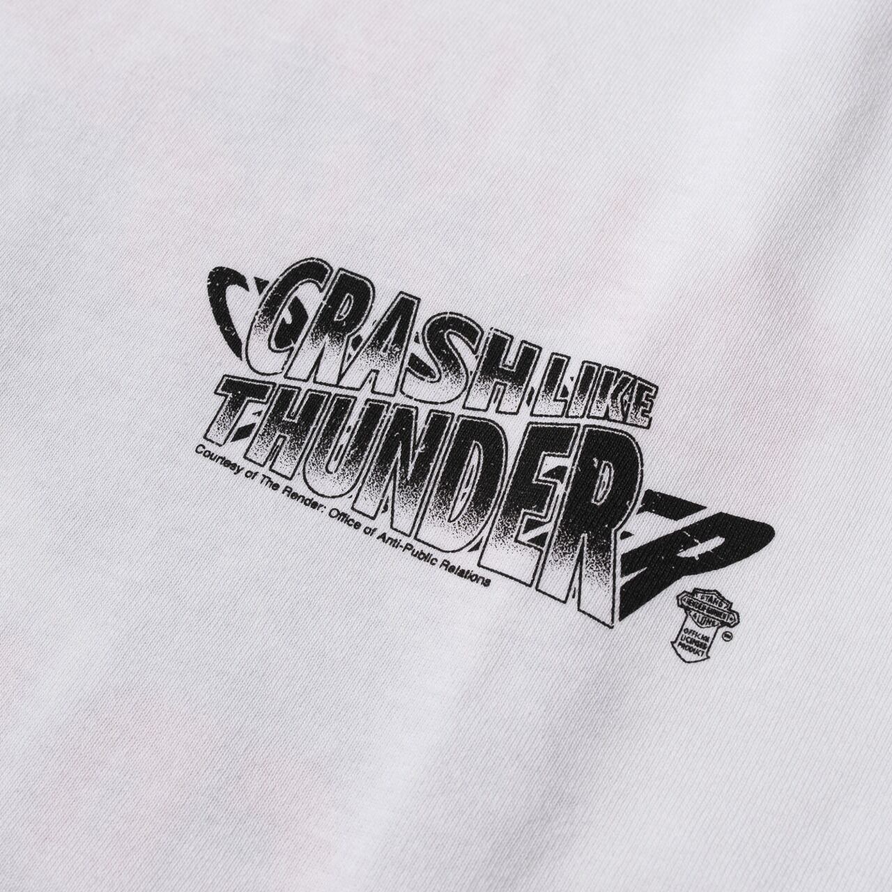 左胸にブランドスローガンのロゴをプリント。後身頃にイーグルをモチーフにした大胆なグラフィックをプリント。左前身頃の裾にピスネーム付。