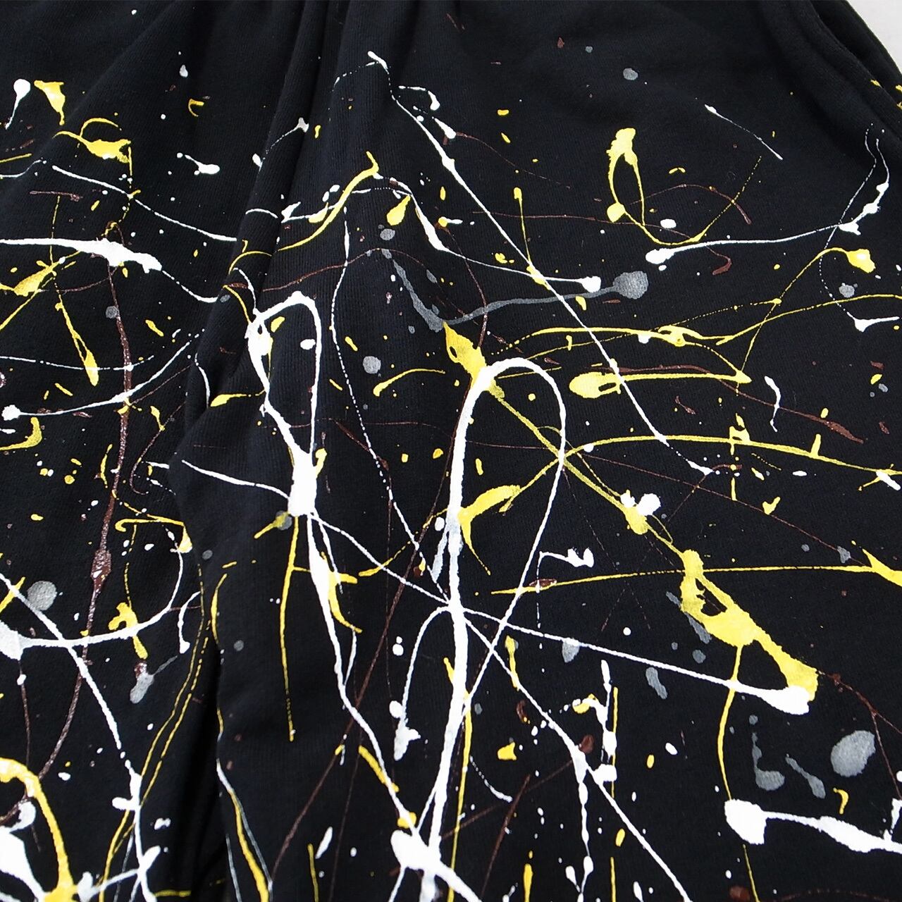 デザイナーが愛するスウェットショーティー。河原光氏が手間暇をかけ、一枚一枚ドリッピングペイントを施すことで出来上がったショーツは、唯一無二であり 他には無いセンスを感じます。