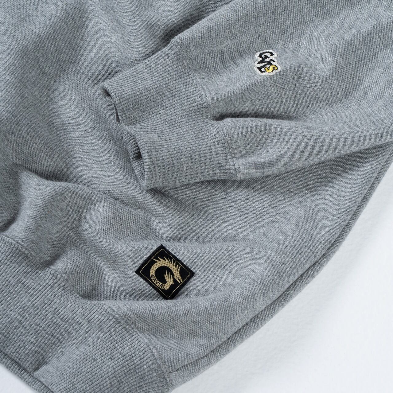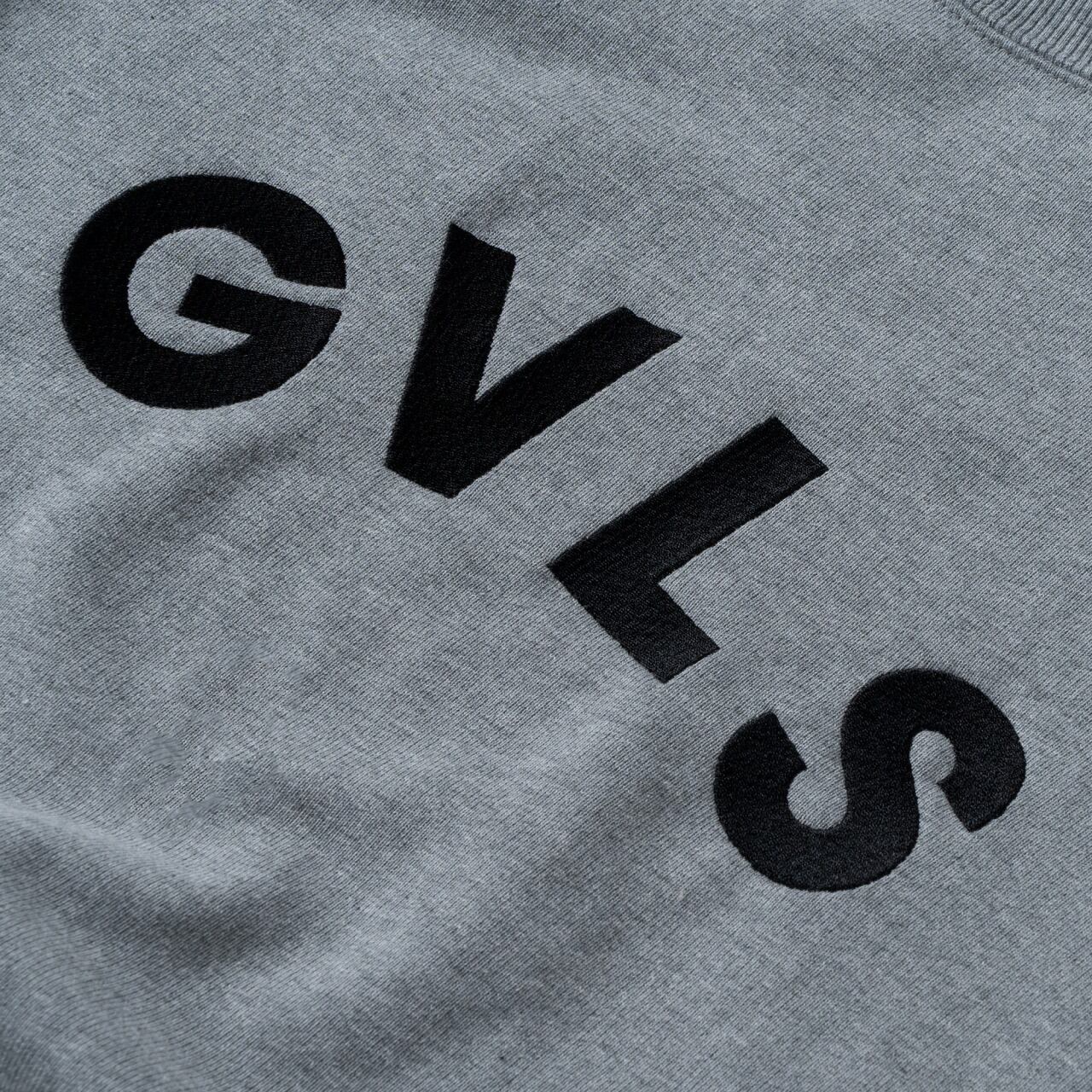 薄手パイル スウェット生地のプルオーバークルーネックスウェット。フロントのアーチロゴGVLSは刺繍で表現され、プリントの表現とは異なり刺繍独自の光沢感と立体感が特有の高級感を放っています。シンプルながらも大人のカジュアルスウェット。