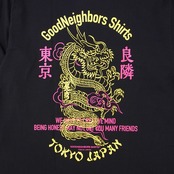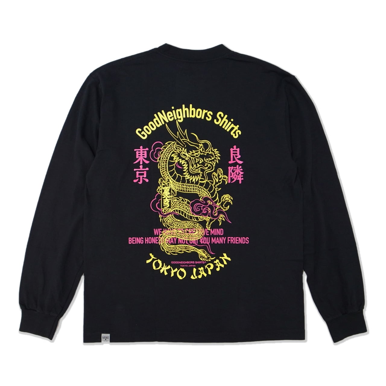 目を惹くバックビューは、オリエンタルな印象のドラゴンが描かれています。コラボレーションの印として、ピスネームが背面裾に付きます。