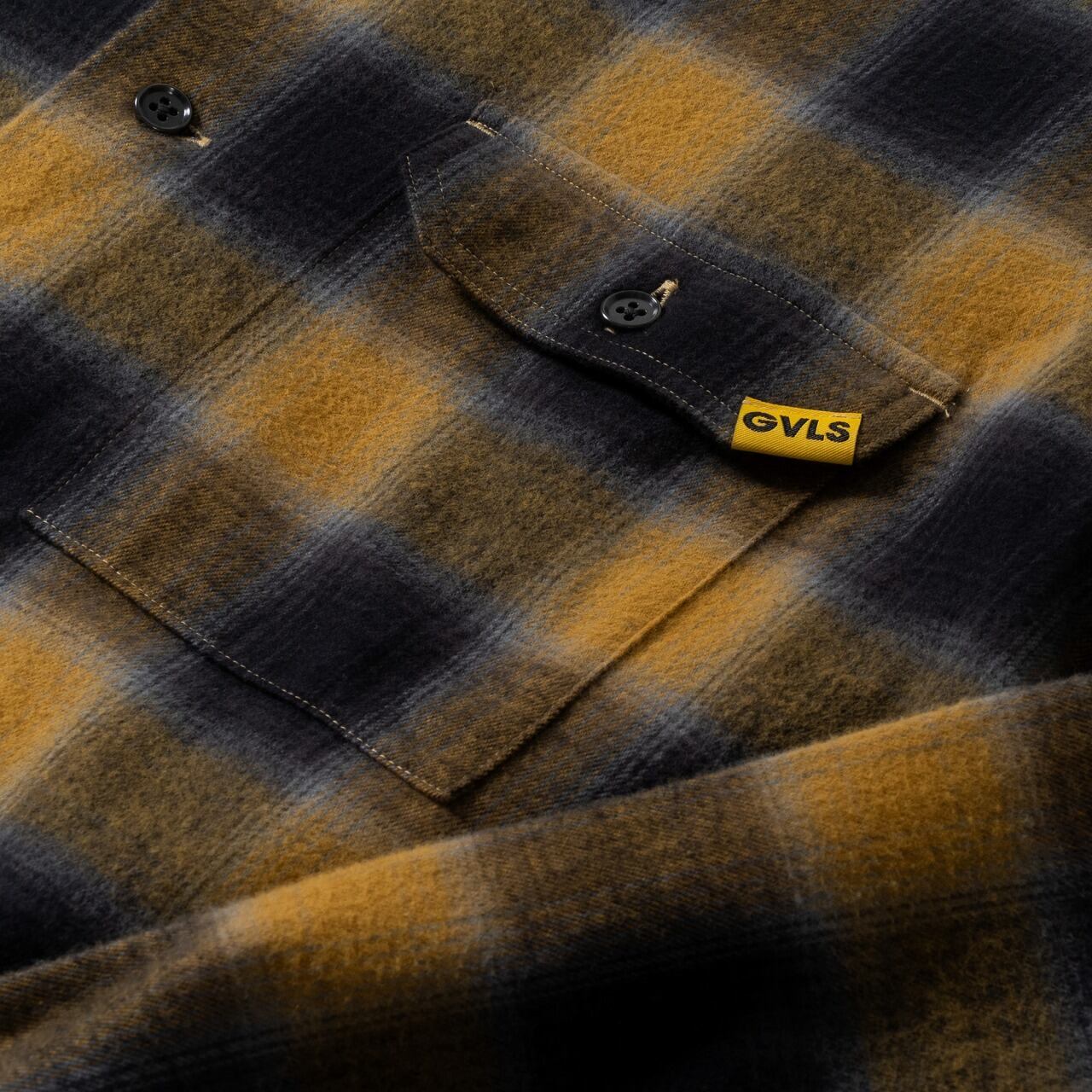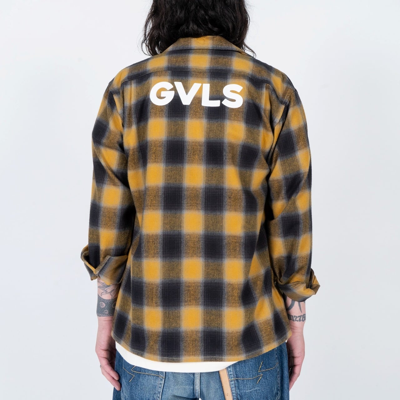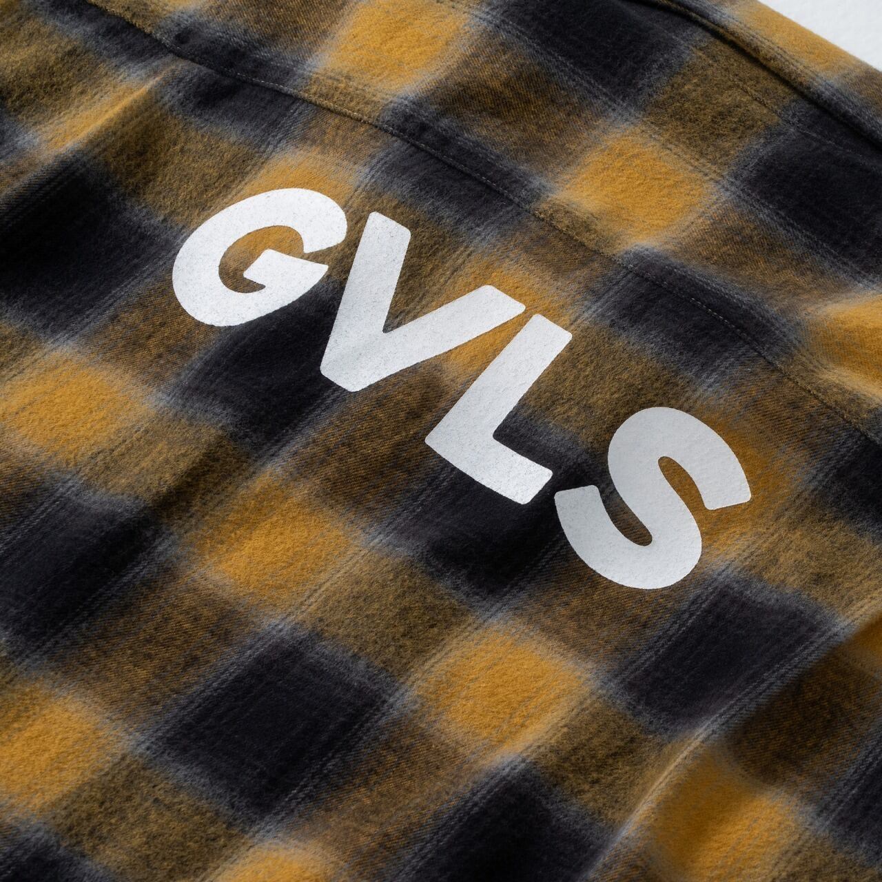 GVLSオリジナルのフランネルシャツ。ゆとりを残しつつも、大きすぎないシルエットを持たせています。非常に柔らかく、手触りの良いコットンネルを使用した王道のアイテムです。背面に配置されたGVLSのロゴプリントが目を惹きます。
