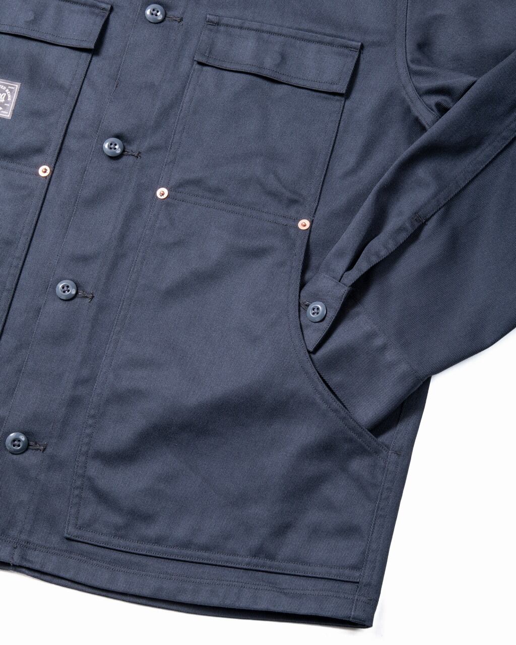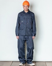 ポケットの構成に着目して、ポケットデザインで独自性を主張したワークジャケット。胸ポケットと腰ポケットを一体化させた。リベットあり。CHOE JACKET、「チョア」とは作業や雑事の意味。