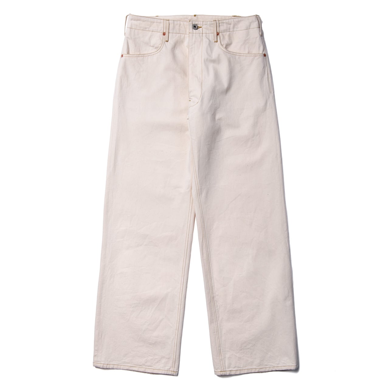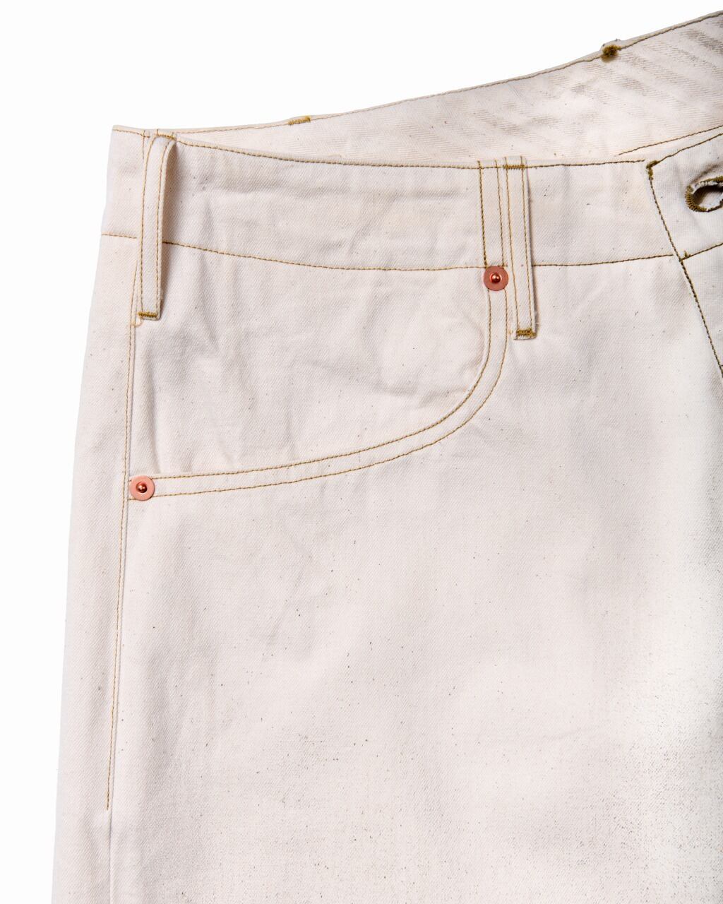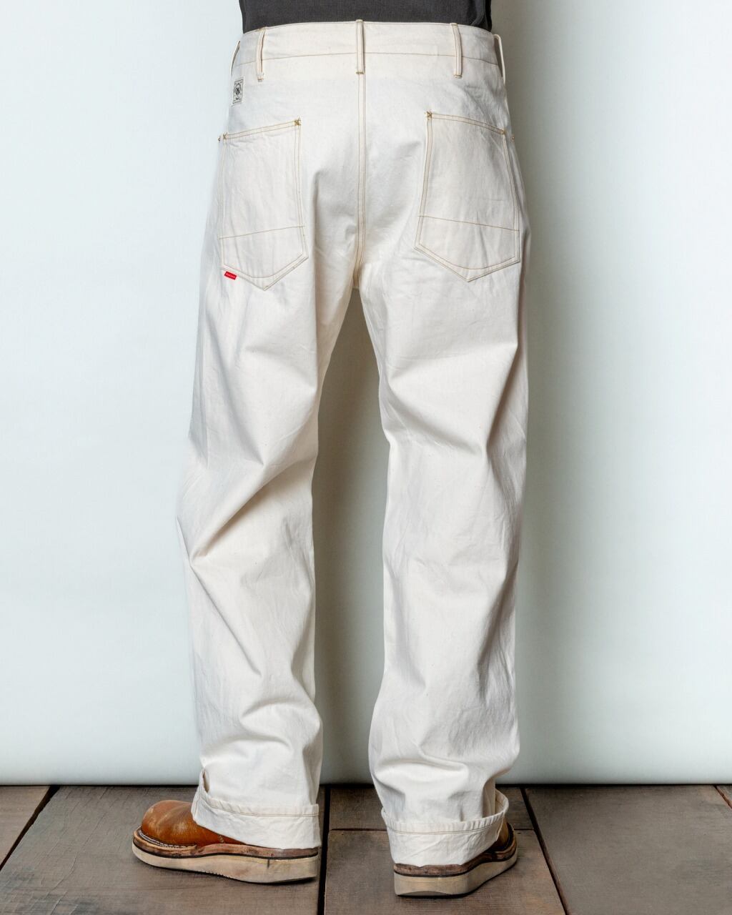 ベイカーパンツに見られる裁ちだしベルトを採用したワイドパンツ。ディティールは極力シンプルにして、ミリタリーに見られる細いベルトループを採用。ワイドめのシルエットです。