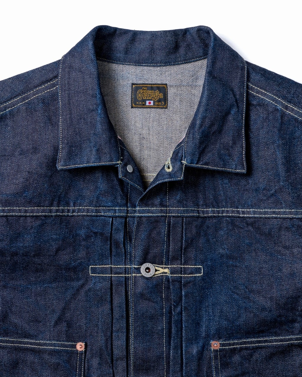 スタンダード。ゲルガオリジナルジージャン。シンプルな構成ではあるが、各所パーツバランス、寸法でオリジナルな佇まいにまとめ上げています。程よくゆとりを持たせたシルエットは、流行り廃り関係なく着用できるバランスを目指しています。背中のヨークに2つのプリーツが設けられ、立体的で動きやすい構造で、動きのあるシルエットと運動性を作っています。