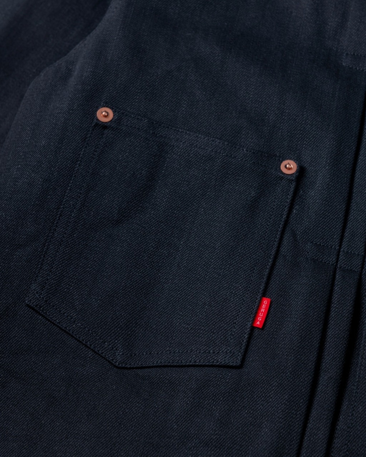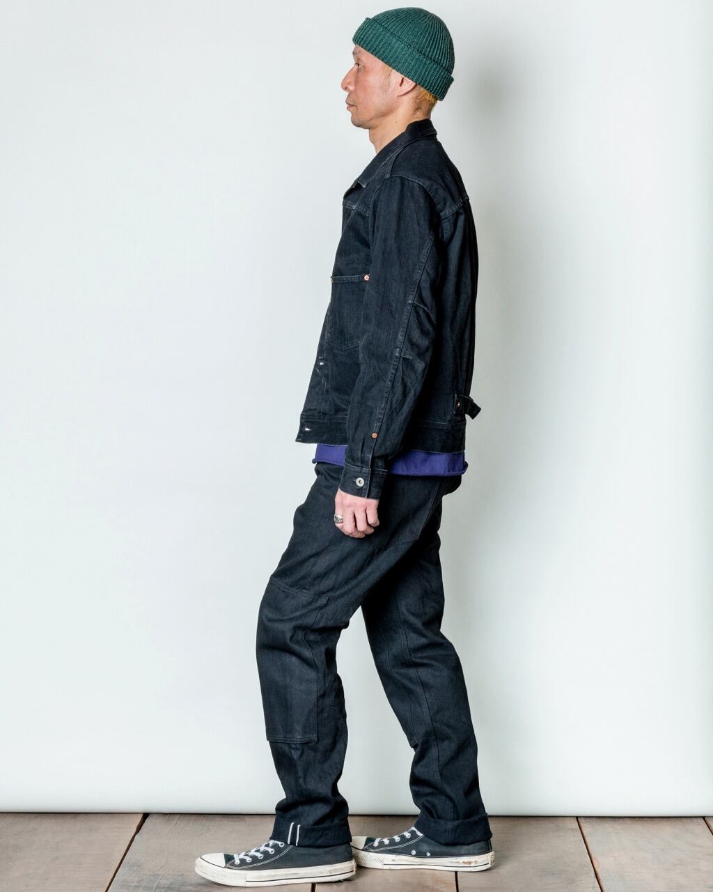 スタンダード。ゲルガオリジナルジージャン。シンプルな構成ではあるが、各所パーツバランス、寸法でオリジナルな佇まいにまとめ上げています。程よくゆとりを持たせたシルエットは、流行り廃り関係なく着用できるバランスを目指しています。背中のヨークに2つのプリーツが設けられ、立体的で動きやすい構造で、動きのあるシルエットと運動性を作っています。
