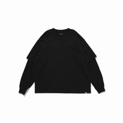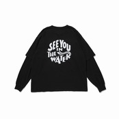 Handwriting Sign PainterのNUTS ART WORKSによるSEE YOU IN THE WATER XV LOGOを使用した、ダブルスリーブ ロングスリーブ T-シャツ。半袖と長袖を重ね着したようなレイヤード スタイルのアイテム。太く膨らみ豊かなアメリカ糸を輸入し、和歌山で編み立てたボディ。肩幅、身幅、袖巾にゆとりを持たせたシルエット。MADE IN JAPANアイテム。
