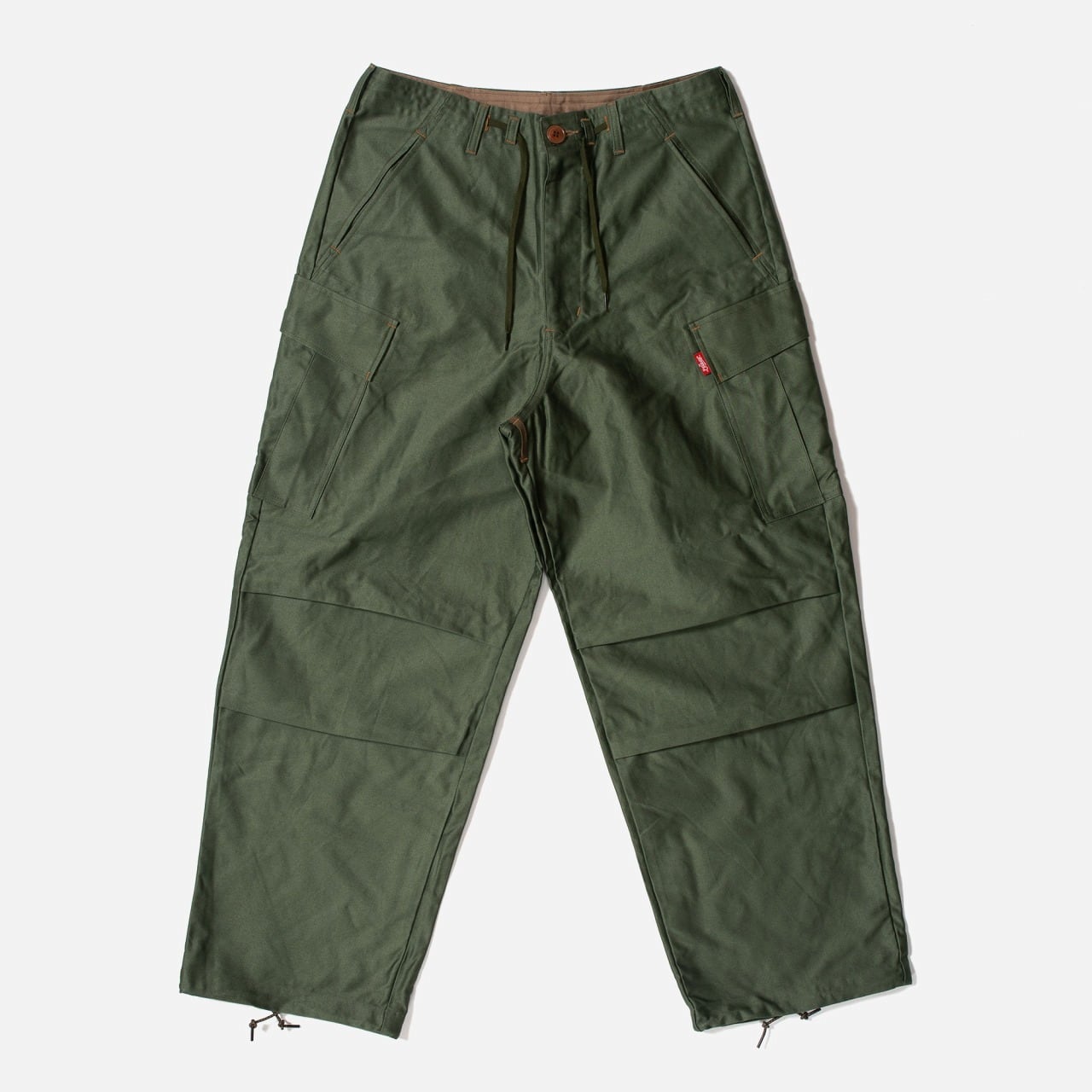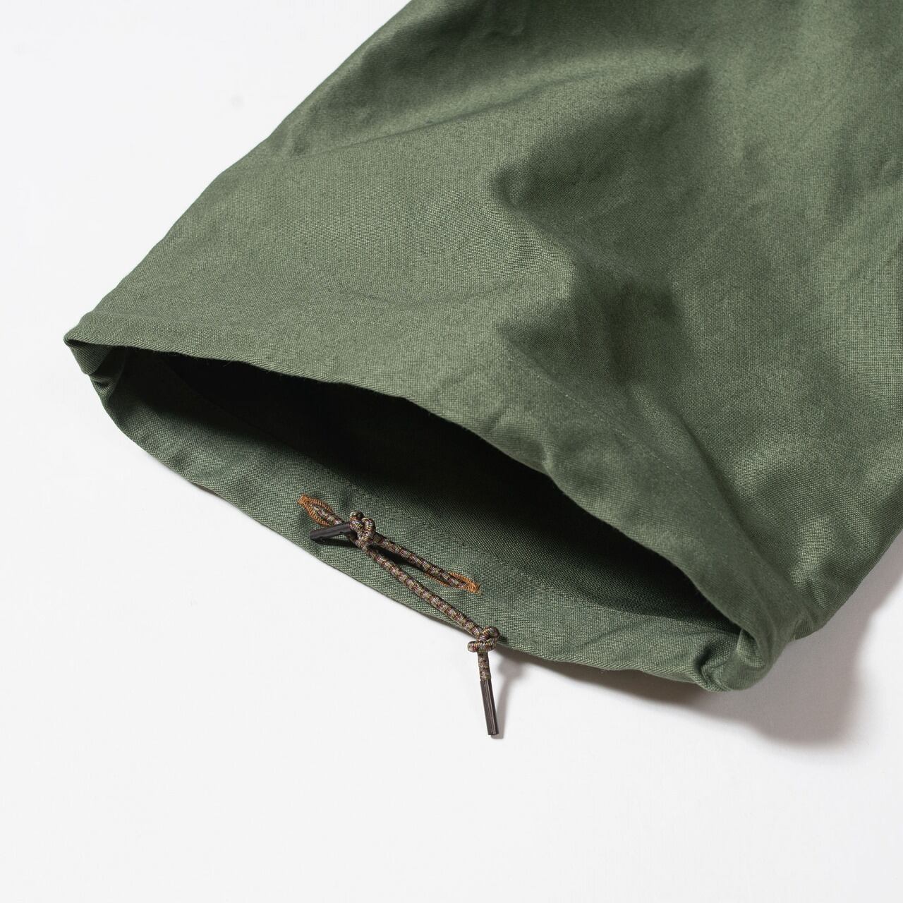 カーゴパンツにおけるアイコン的存在のM65がベースのフィールドトラウザー。素材は強度、耐久性を図り、高密度で織り上げられたフレンチモールスキン硫化染め を採用。ウエスト部分にドローコードを内臓しウエストの調整が可能。