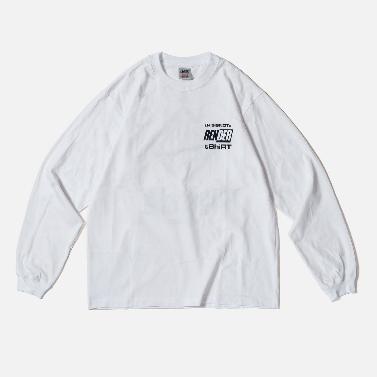 首ぐりと袖口のフライス素材も度詰め引き揃え加工を施し耐久性に優れています。フロント左胸にRenderロゴグラフィック。バックはRenderシグネイチャーロゴのグラフィックをプリント。