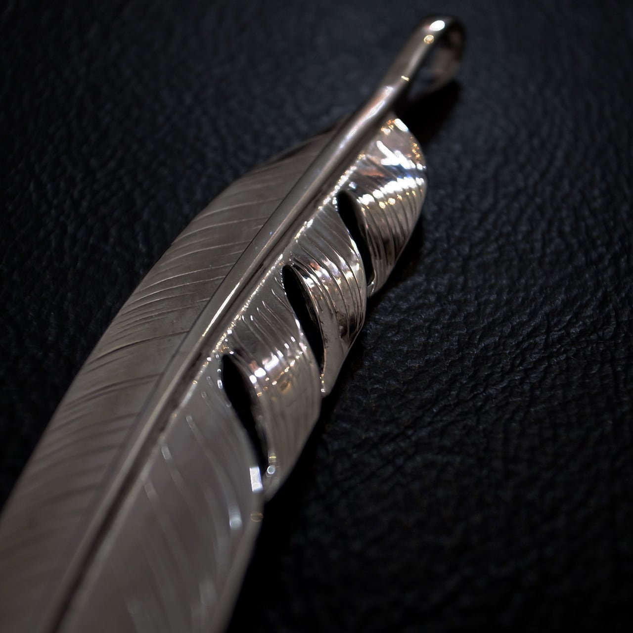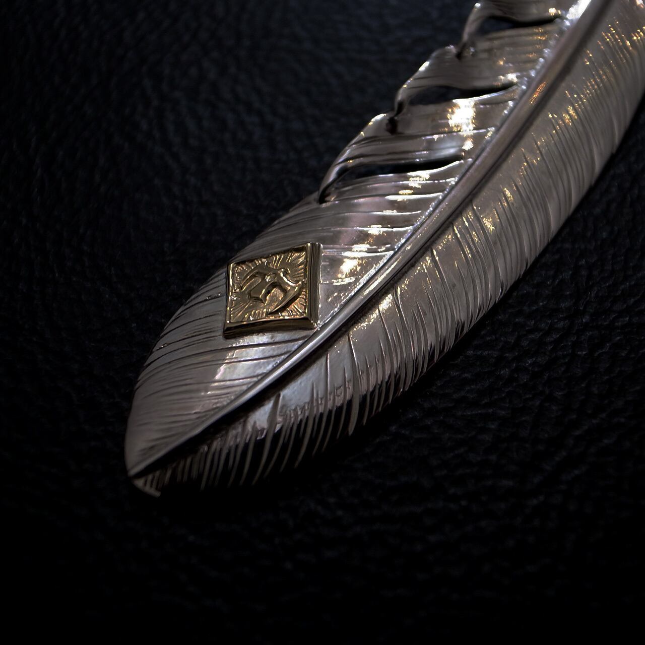 L サイズのフェザー02をベースにM K18 イーグルメタルを配置した、TARO WASHIMIらしさのあるフェザー。丸みのある柔らかな印象を持つフェザーで美しい彫金が魅力的です。