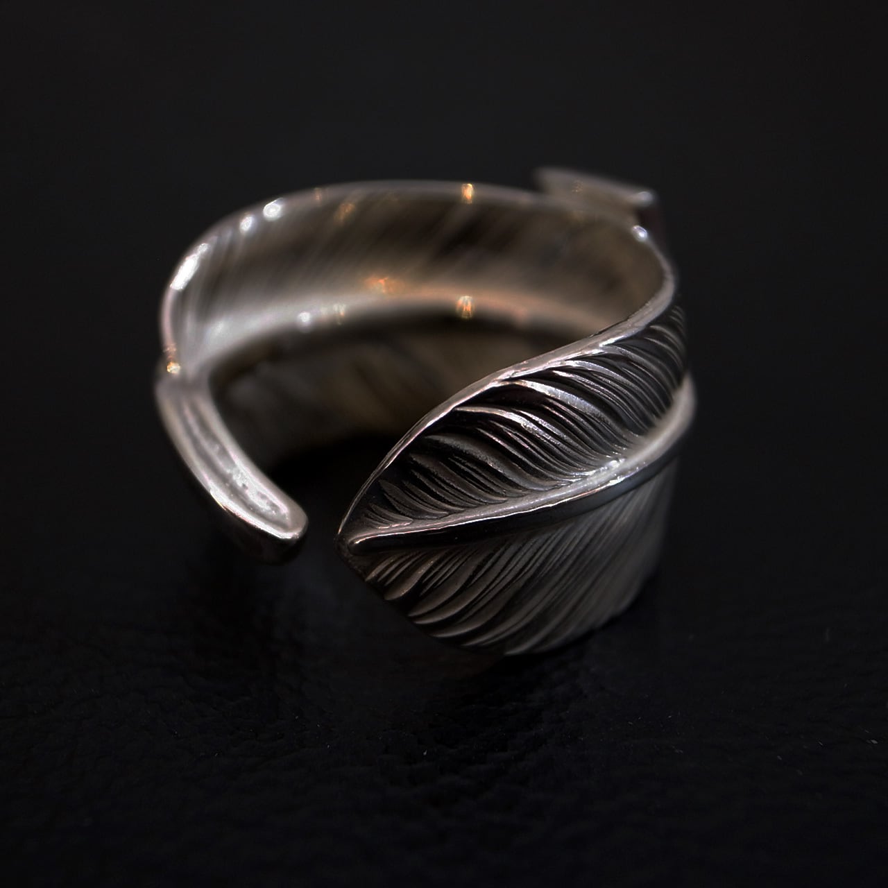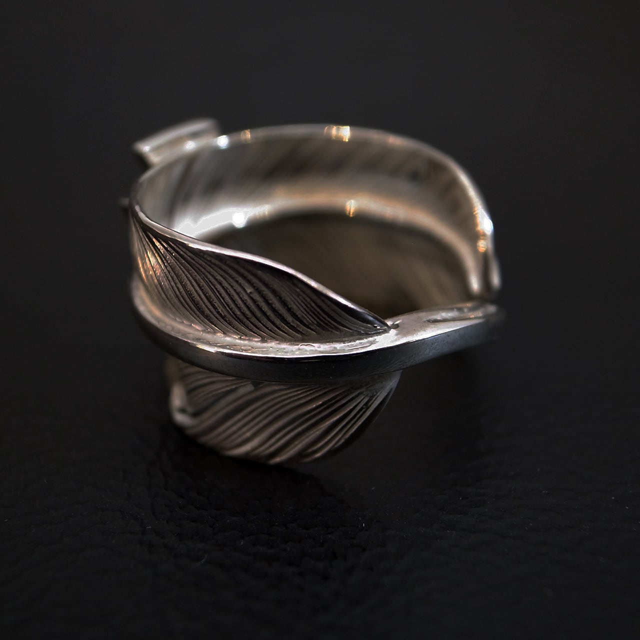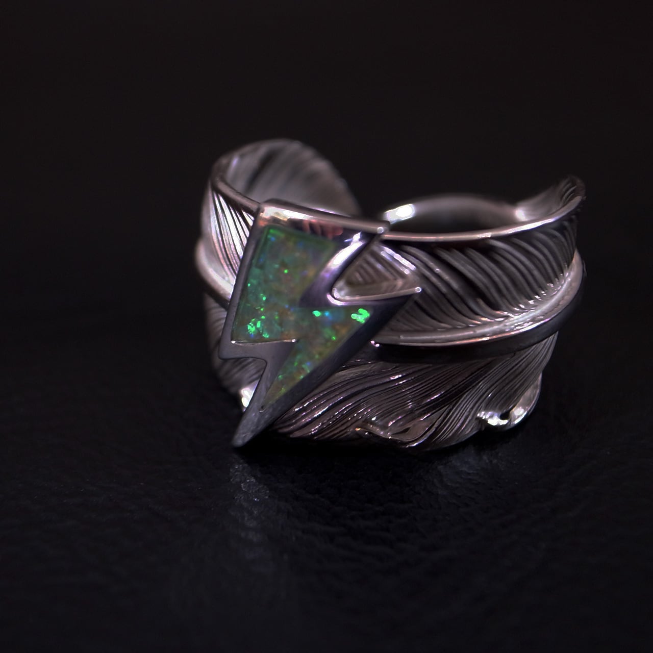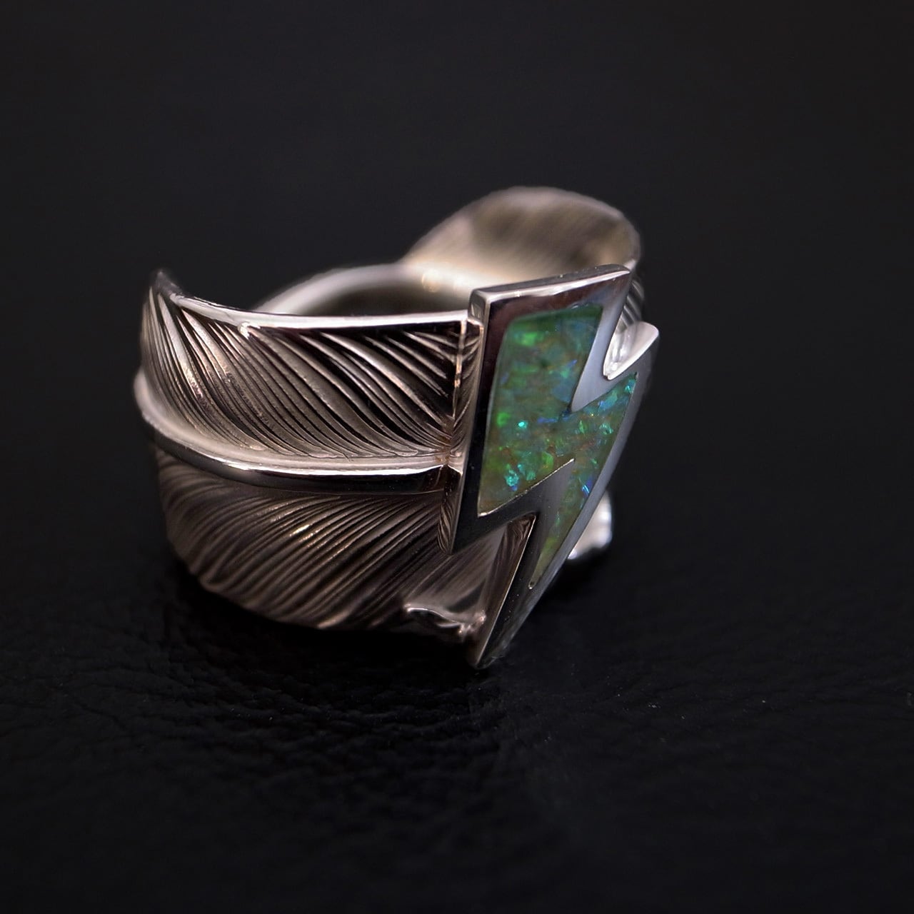 Lフライトフェザーリングにサンダー+オパールを配置した美しいリング。サイズは21号に合わせてありますが、多少の調節は可能なところも使い勝手の良いところです。