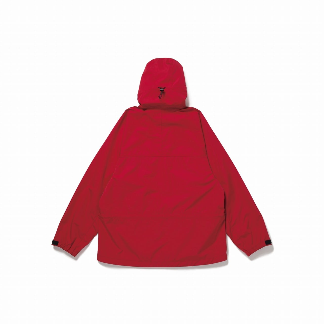 雨や風に強い透湿、防風、耐摩に優れた防水ナイロン素材を使用したシェルジャケット。肩に極力ストレスをかけないよう、できるだけ平行に取った肩下がりと可動域が広いスプリットヨークを採用したパターンメイクも魅力的です。肩幅、身幅、袖幅にゆとりを持たせたシルエット。