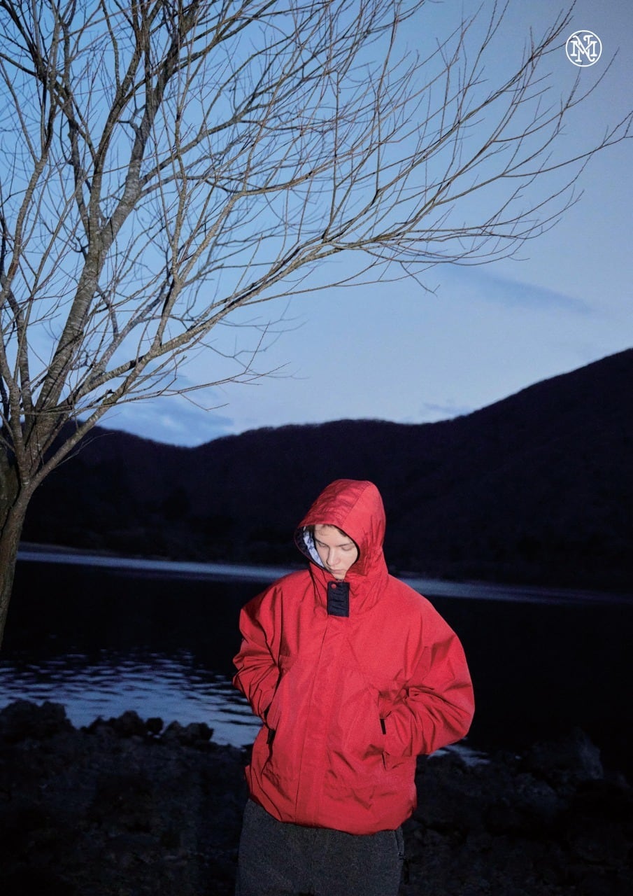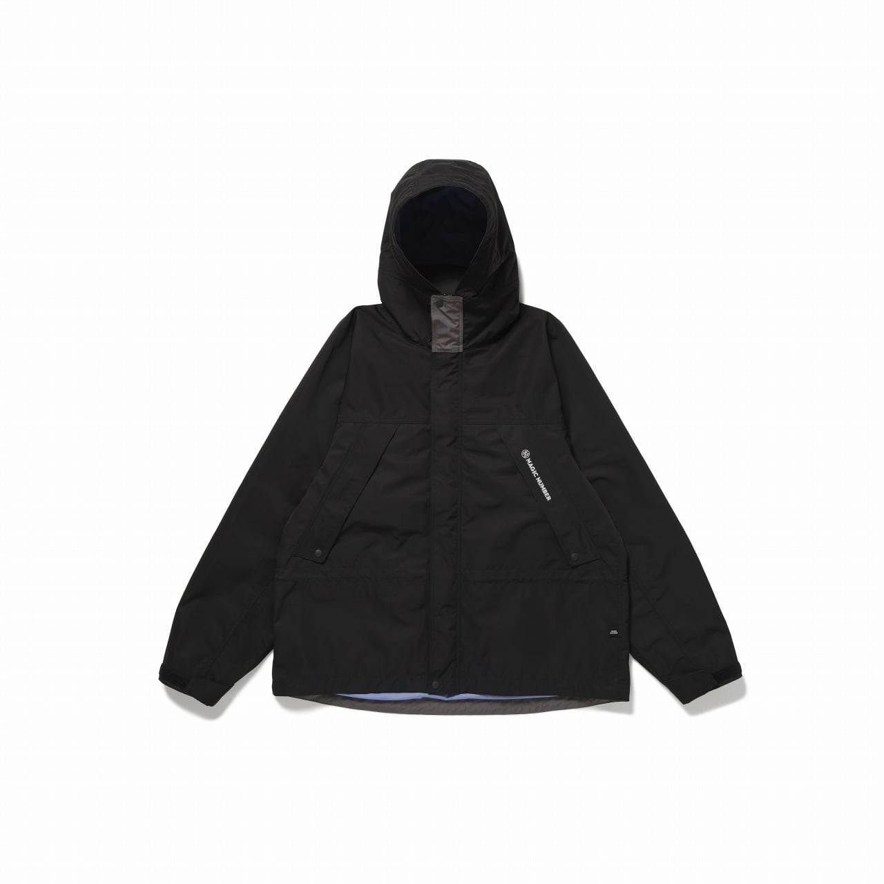 雨や風に強い透湿、防風、耐摩に優れた防水ナイロン素材を使用したシェルジャケット。肩に極力ストレスをかけないよう、できるだけ平行に取った肩下がりと可動域が広いスプリットヨークを採用したパターンメイクも魅力的です。肩幅、身幅、袖幅にゆとりを持たせたシルエット。