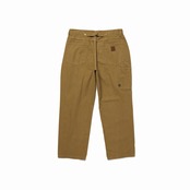 ワークウェアとパーカーをソースに不要なデザインを極力排除し、タウンユース向けに落とし込んだワークパンツ。耐久性に優れたダックに強めにバイオストーンをかけ古着のようなあたり感を表現しています。ヒップ寸法、ワタリ幅、膝幅にゆとりを持たせ、裾にかけてテーパードしたシルエット。