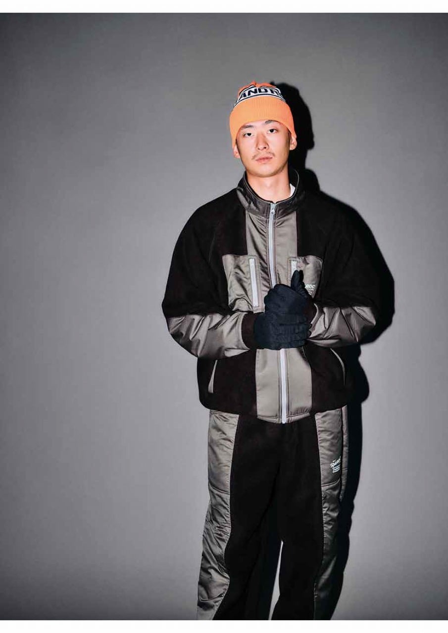 ジャケットとのセットアップももちろんですが、ニットやフーディなどとも相性抜群のツートンフリースパンツです。
