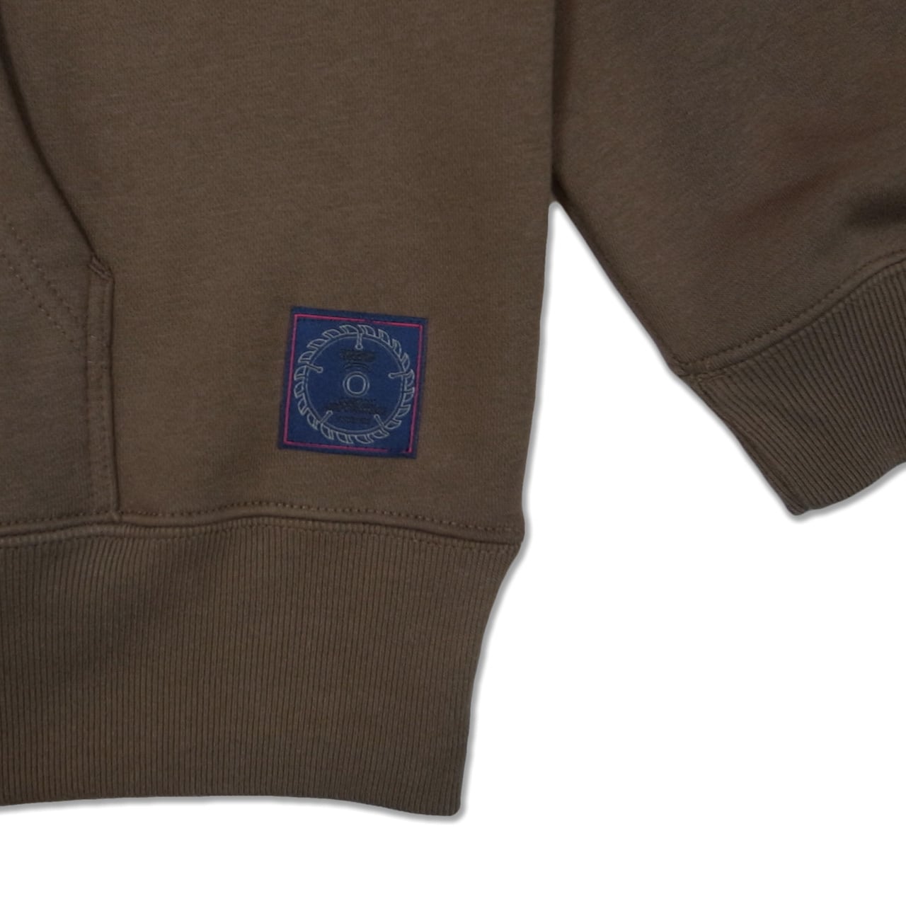ふっくらした裏起毛素材を使用し、やさしい肌あたりと高い保温性があるプルオーバーパーカー。軽くて丈夫な綿×ポリエステル素材を使用しています。バック裾には★刺繍を配置。