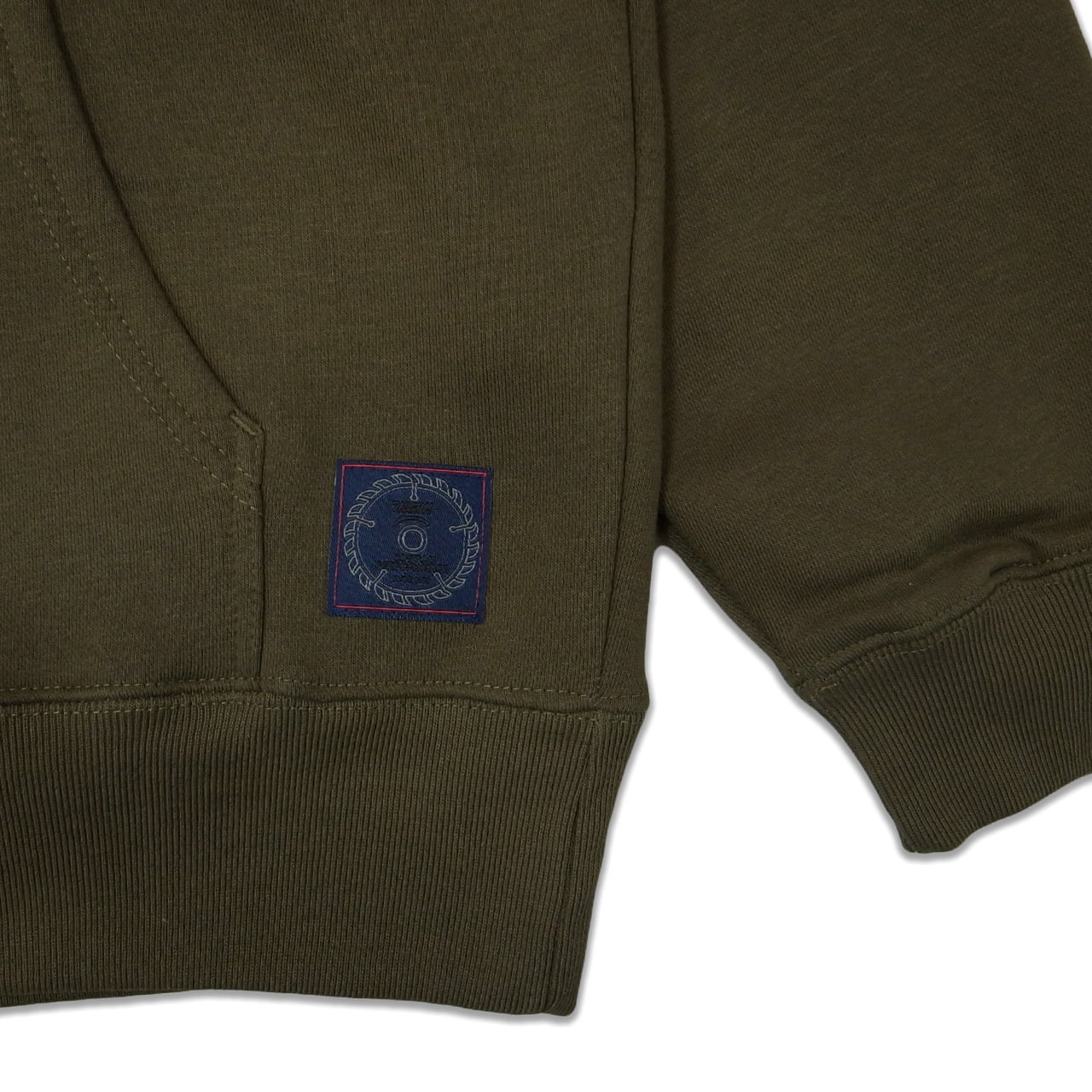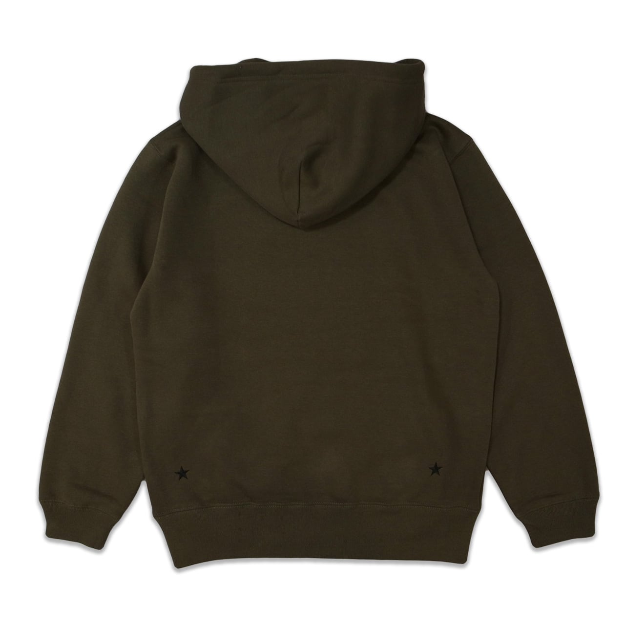 ふっくらした裏起毛素材を使用し、やさしい肌あたりと高い保温性があるプルオーバーパーカー。軽くて丈夫な綿×ポリエステル素材を使用しています。バック裾には★刺繍を配置。