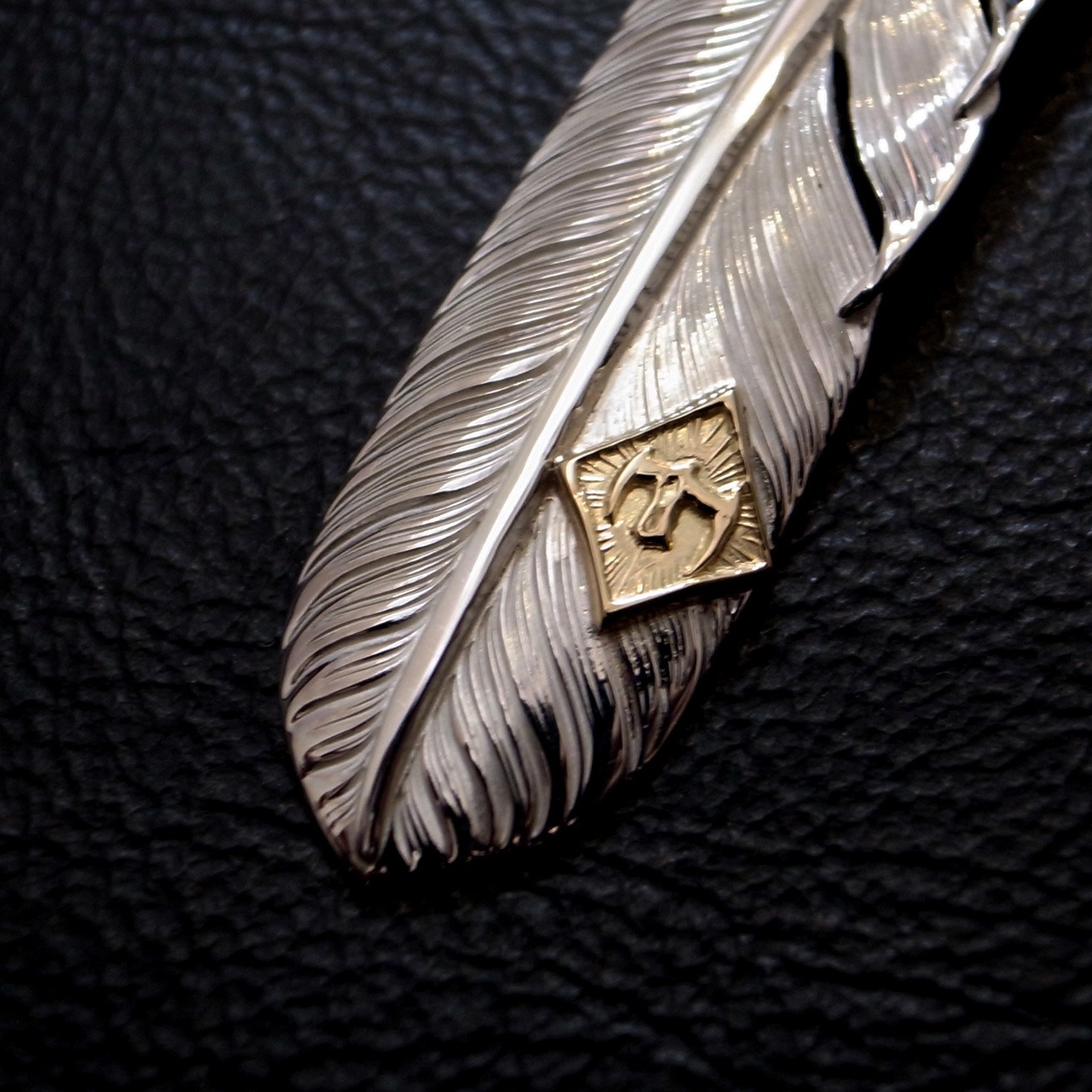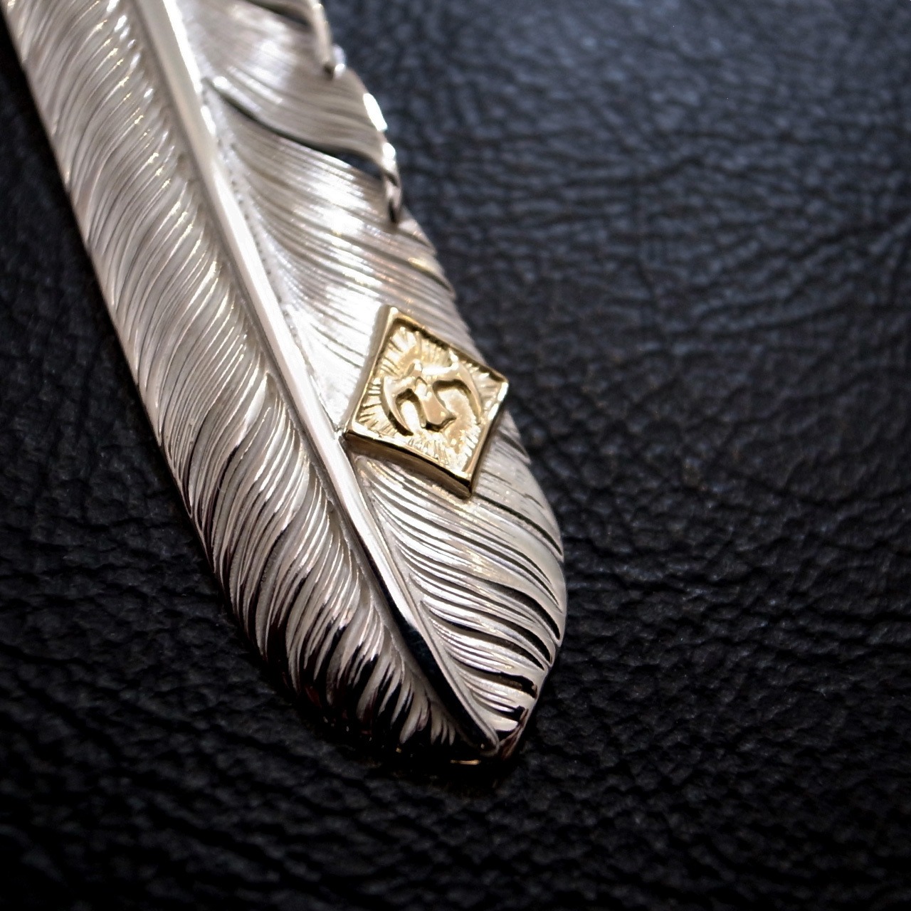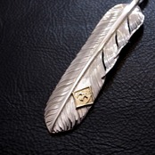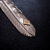 L サイズのフライトフェザー01をベースにM K18 イーグルメタルを配置した、TARO WASHIMIらしさのあるフェザー。数種あるフェザーの中でもシャープな印象のフライトフェザーは洗練された印象を持ちます。美しい彫金が魅力的です。