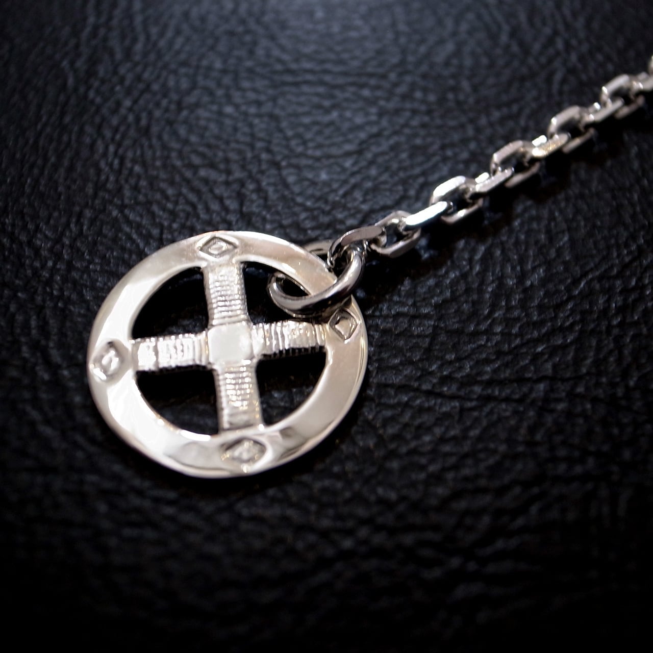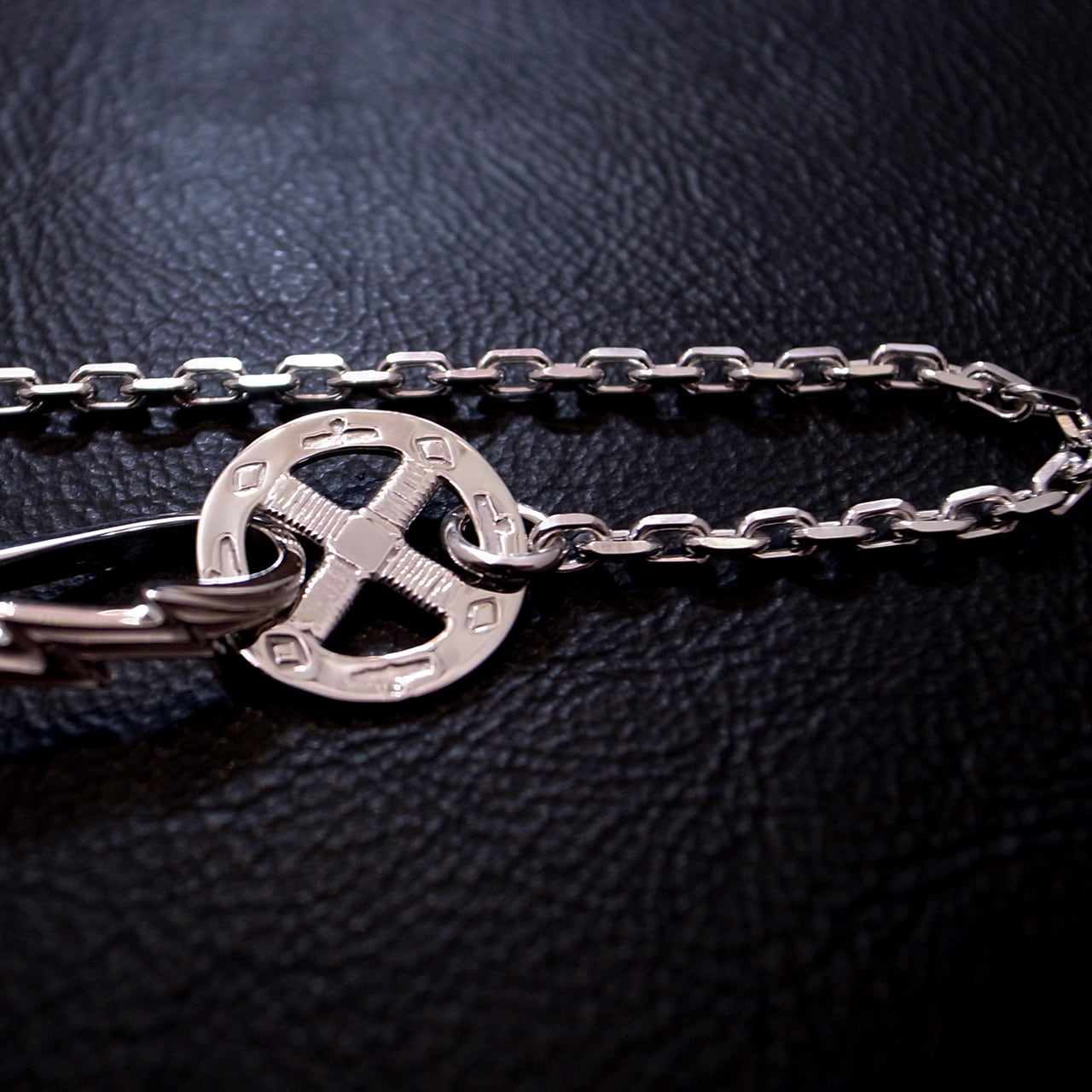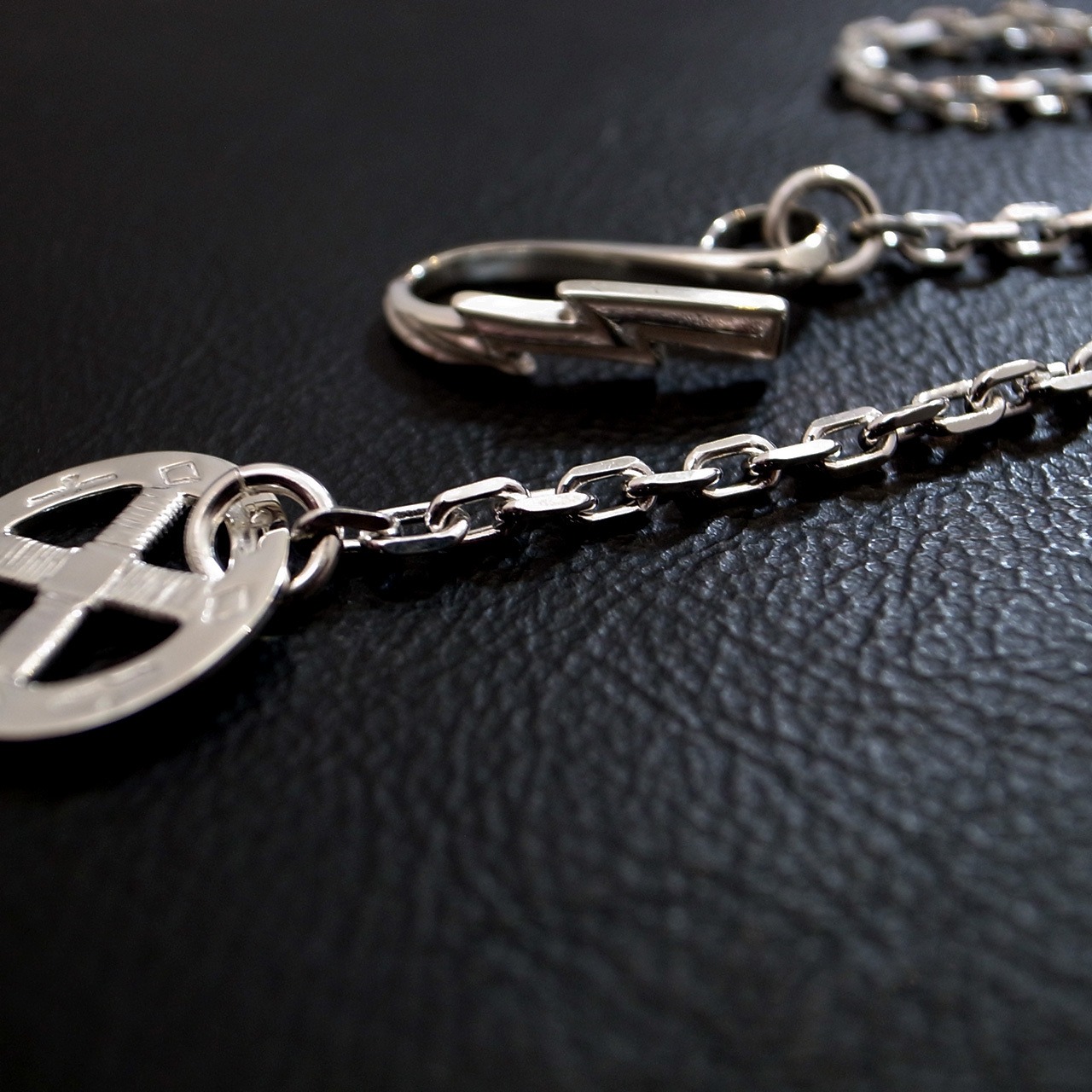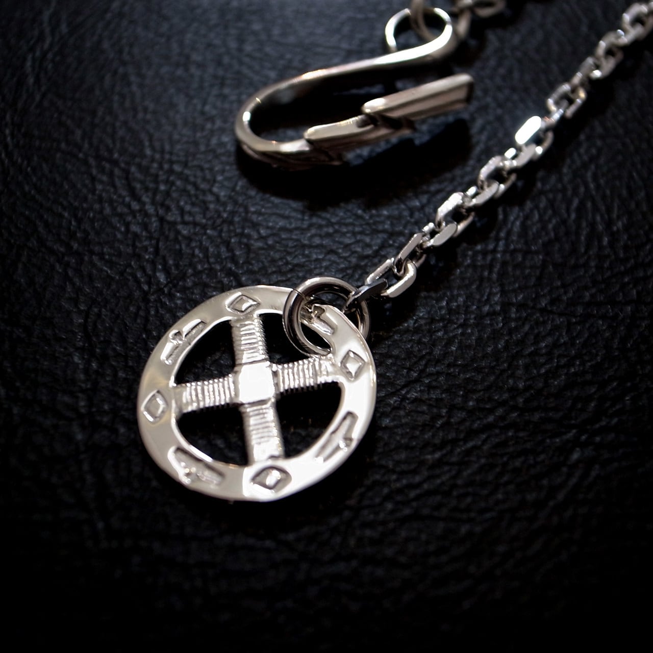 TARO WASHIMIのスタンダードアイテム、サンダーフックメディスンホイールチェーン。角デザインのチェーンです。こちらはイーグルデザインのホイールです。通常長さの50cmのモデル。
