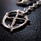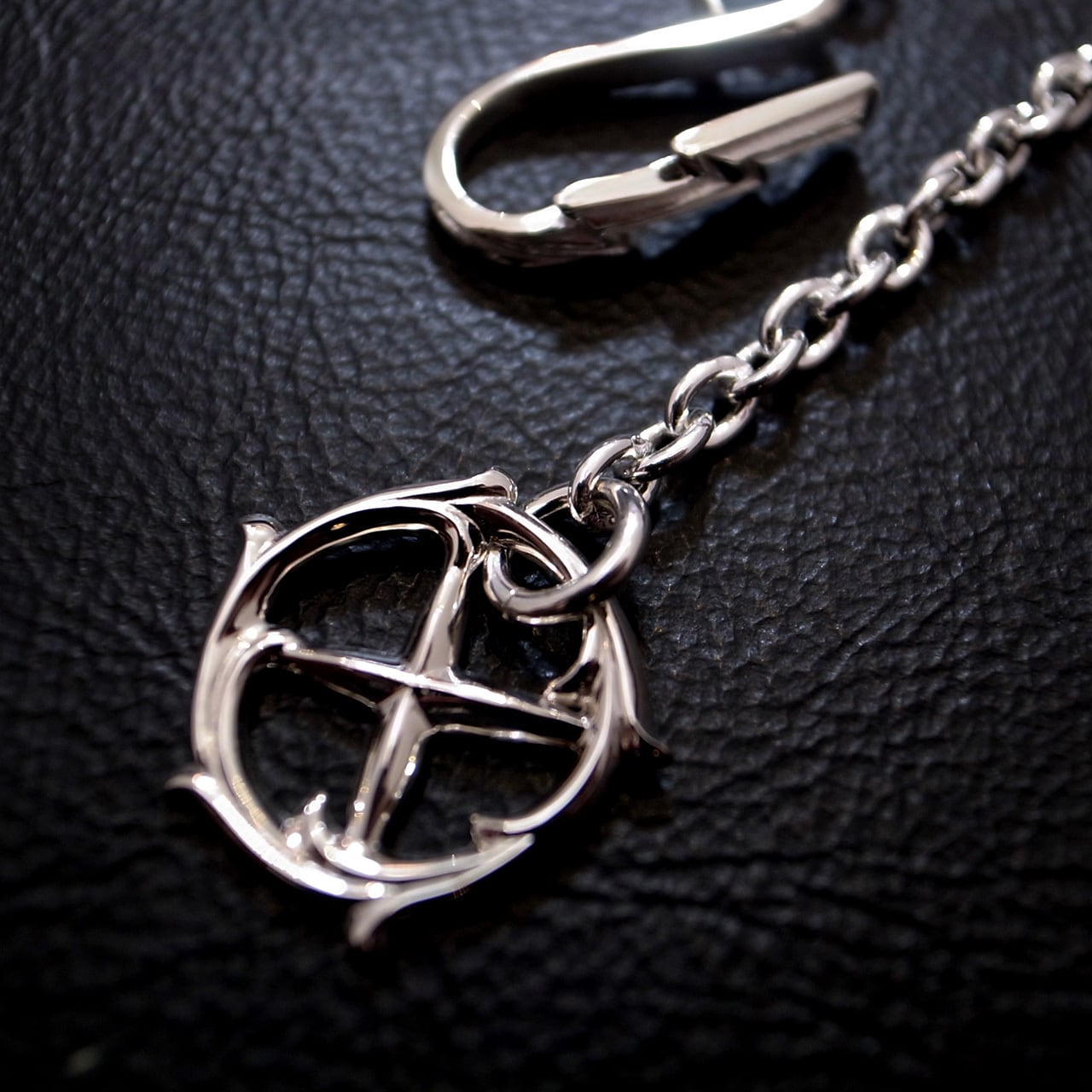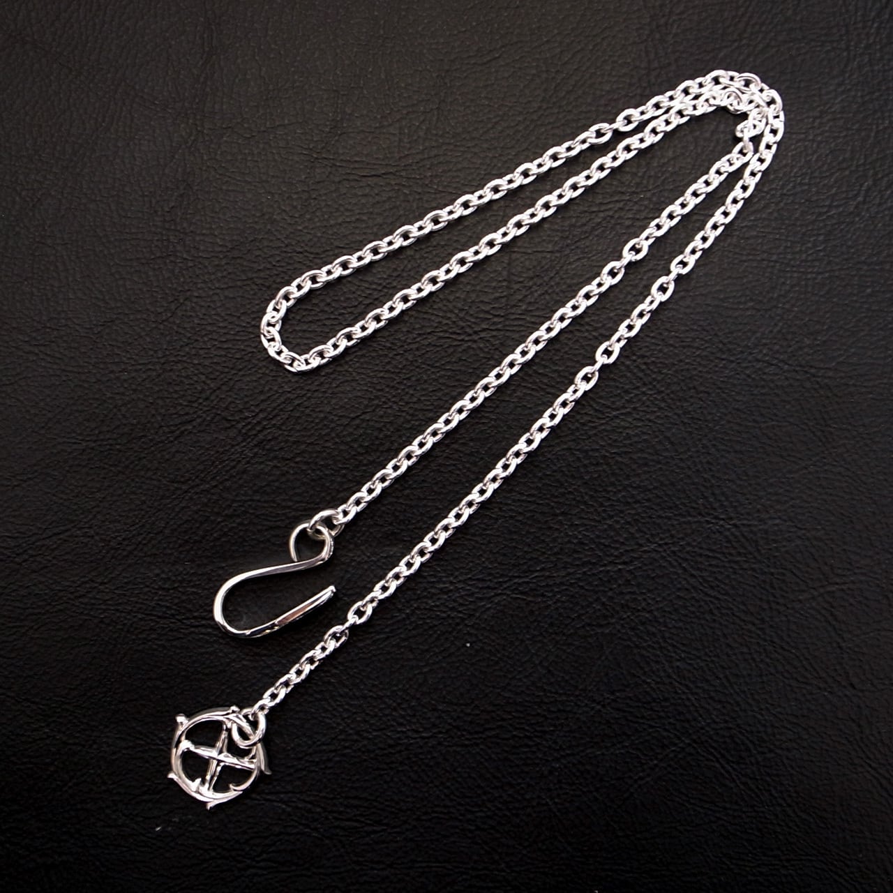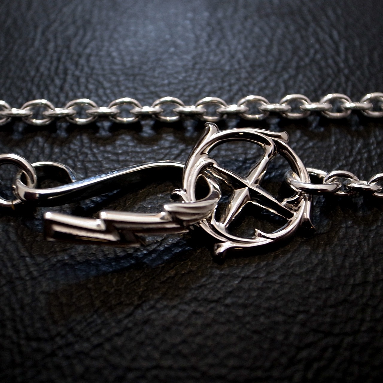 TARO WASHIMIのスタンダードアイテム、サンダーフックメディスンホイールチェーンのホイールを立体唐草ホイールにカスタムしたモデル。チェーンはアズキチェーンです。通常長さの50cmのモデル。
