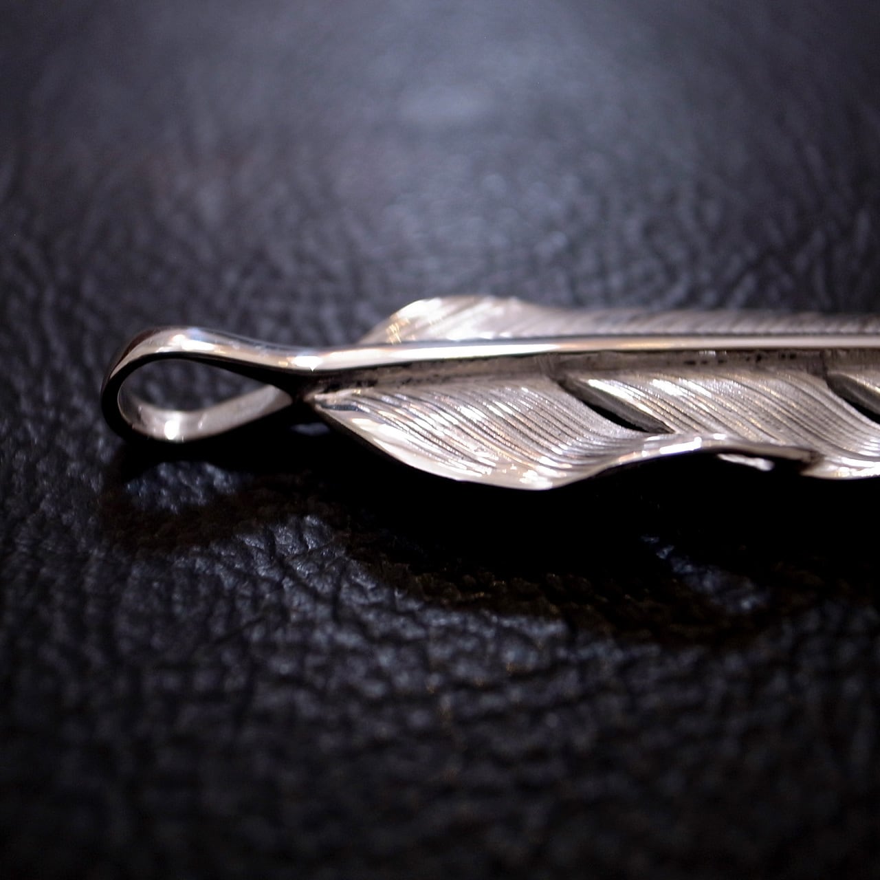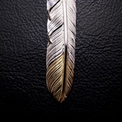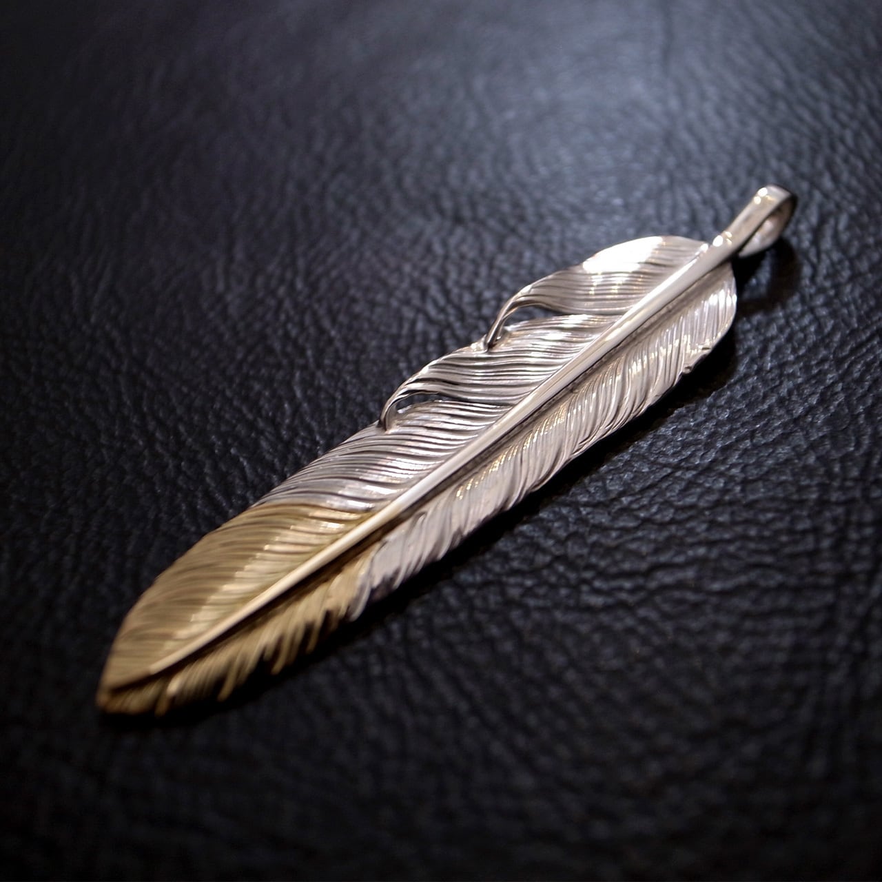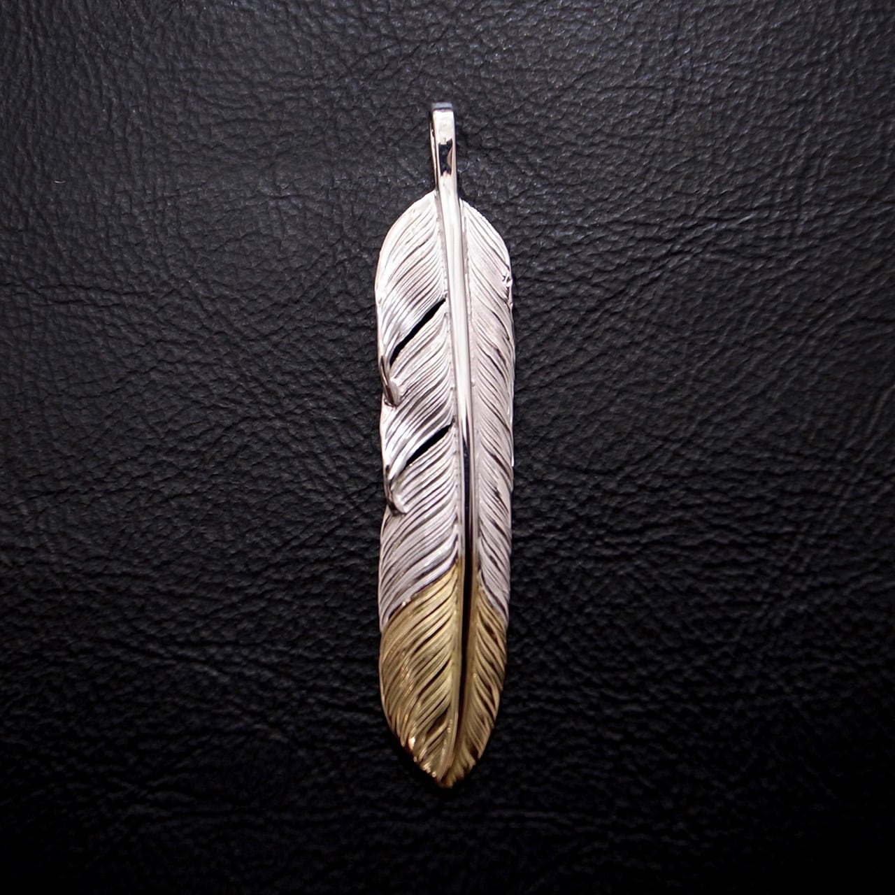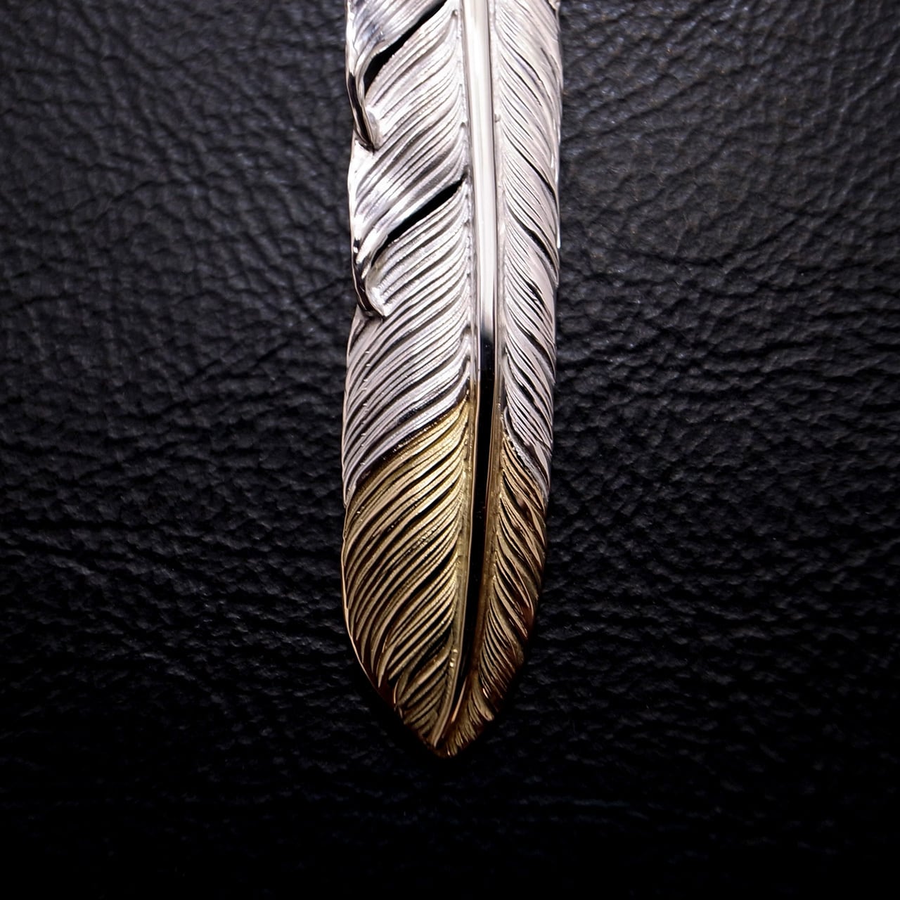 M サイズのフライトフェザー02をベースに羽先をK18 GOLDを配置した、TARO WASHIMIの彫金の美しさを感じるフェザー。数種あるフェザーの中でもシャープな印象のフライトフェザーは洗練された印象を持ちます。シルバーとゴールドのコントラストが魅力的です。