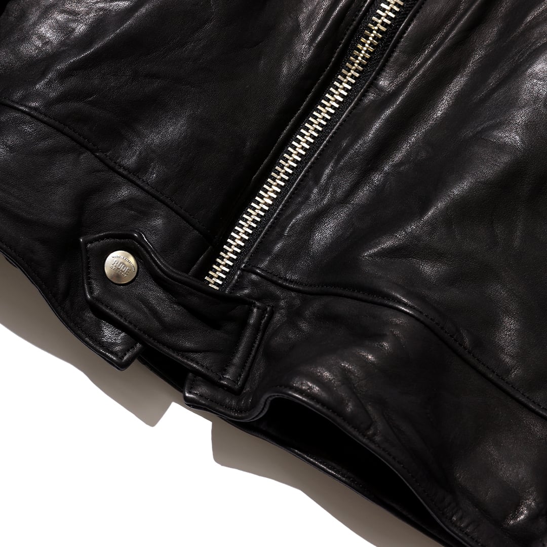 STEERHIDE 水染め1.1mm厚の柔らかく馴染みのいい皮を使用した1着。音楽シーンにもモーターサイクルシーンにも通じるレザージャケットです。