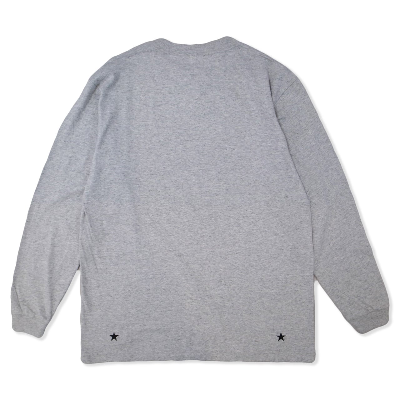 程良い厚みの5.6ozリブ付きロングスリーブ T-シャツ。両前袖内側にAAAデザインを配置。左胸に焼印ロゴをプリント。バック裾には★刺繍を配置。
