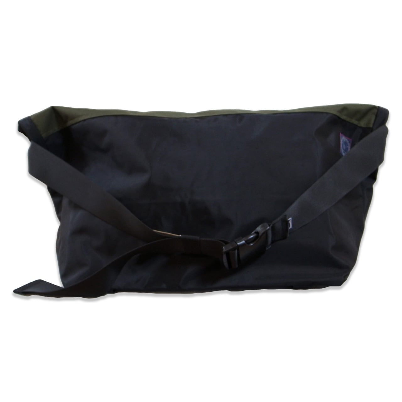 大容量でタフなメッセンジャーバッグ。フロントにリフレクタープリントとロゴワッペンを施してあります。3つのビッグポケットで荷物を整理でき、底面ストラップで容量調整も可能。シートベルト素材のストラップと着脱しやすいバックル仕様で、重い荷物でも快適。防水性に優れたPVC加工で、自転車・アウトドア・タウンユースと幅広く活躍します。
