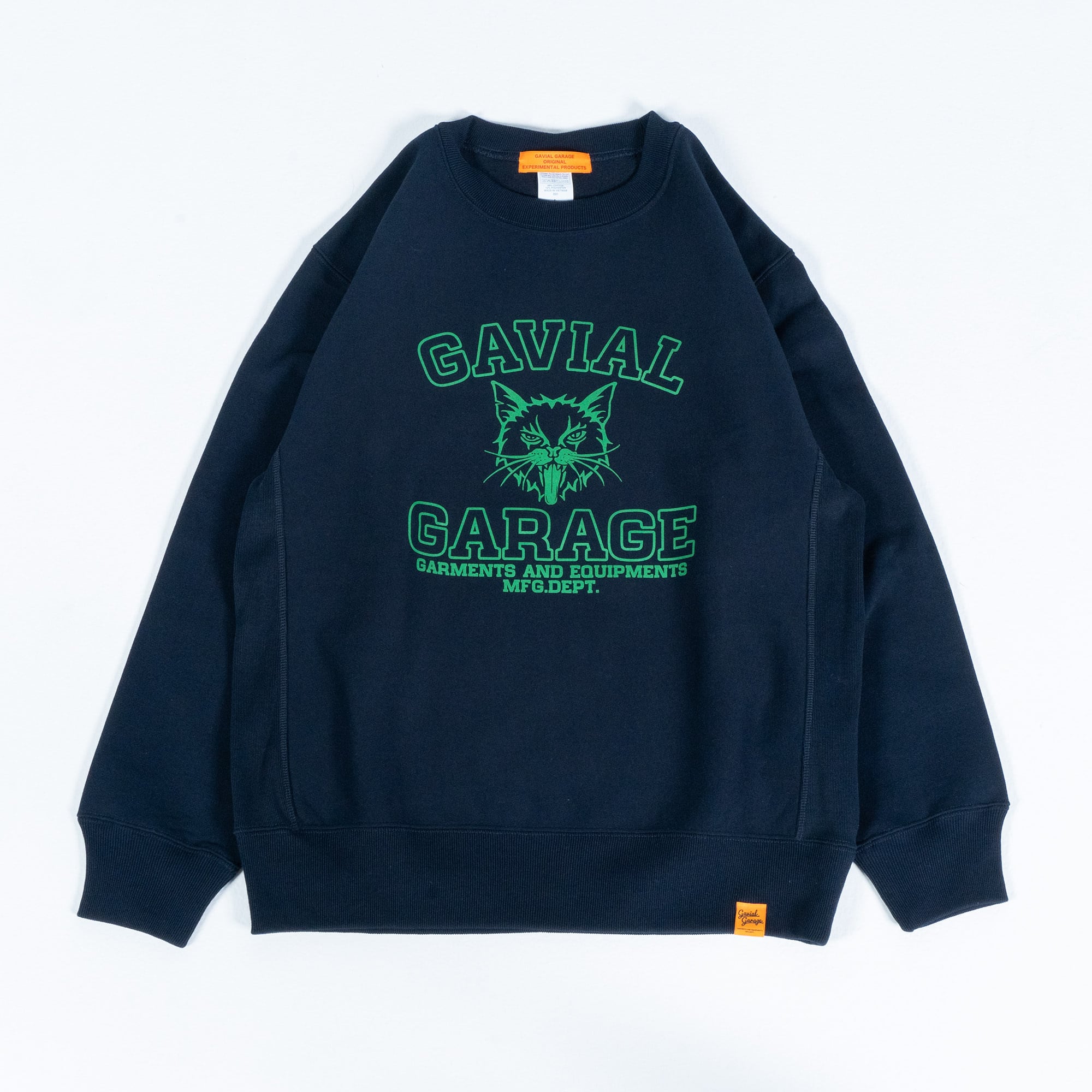 12ozのしっかりとした生地に、裏起毛で温かく過ごせる厚手スウェット。GAVIAL GARAGE カレッジロゴのグラフィックをプリント。
