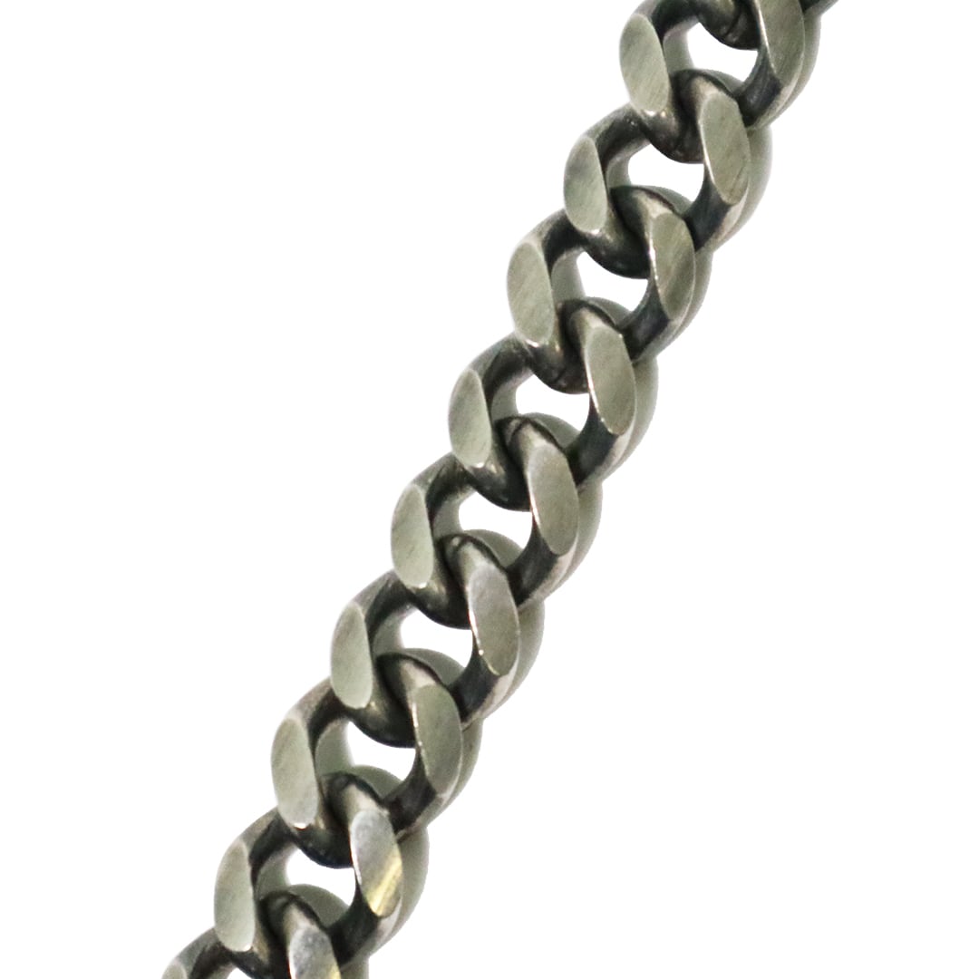 シンプルでいて使い勝手の良いウォレットチェーン。RUDE GALLERYらしい、シンプルでソリッドなキヘイチェーンはコーディネイトの幅も広く、取り入れやすいデザインです。こちらはブラス素材にシルバーのコーティングをしたものです。