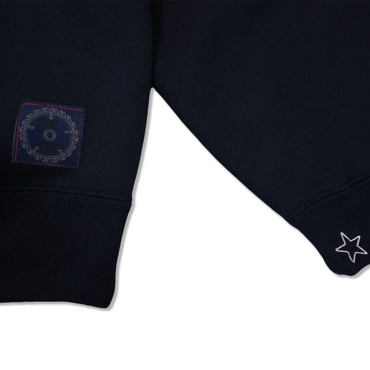 裏起毛10オンスながら軽やかなT/C生地を使用したクルーネックスウェット。表地は綿100%で構成しているため毛玉が出来にくく、デイリーに着やすい仕上がり。左胸にロゴプリント、バックにグラフィックプリント。袖リブに☆刺繍を施したデザイン。
