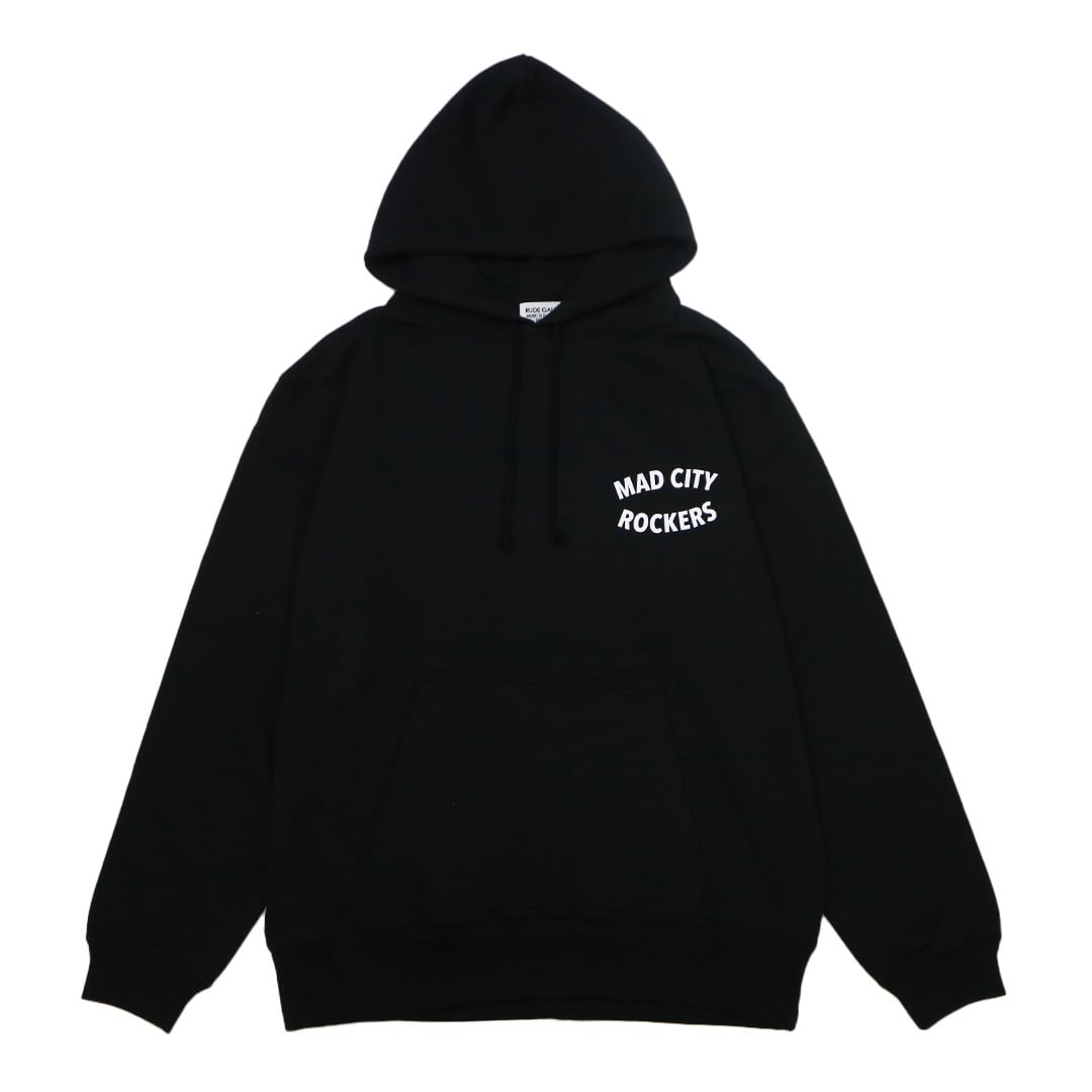RUDE GALLERY のメインデザインのひとつであるマリアメインにデザインしたスウェットパーカー。裏パイル仕様で、インナー使いにもお勧めです。
