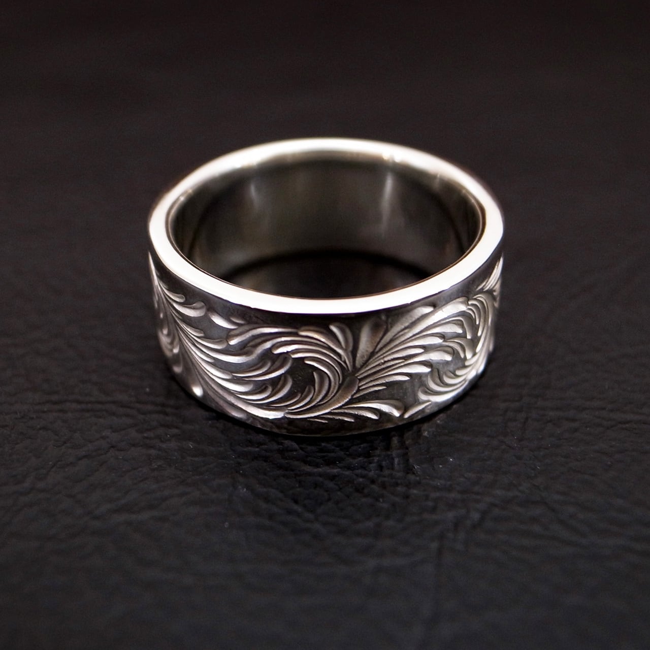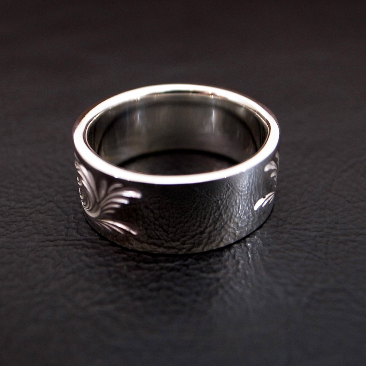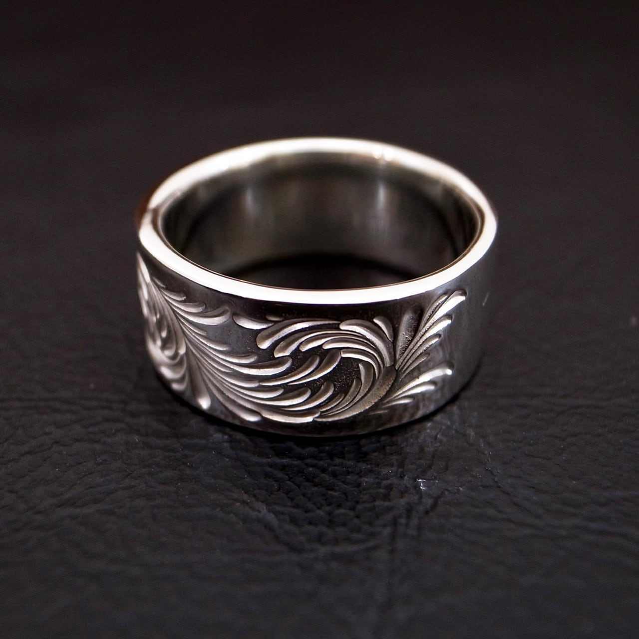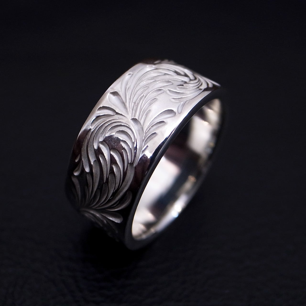 アラベスクデザインが美しく彫りこまれたリング。10mm幅のリングにアラベスクが美しく配置されています。美しく彫り込まれたアラベスク彫りからは、TARO WASHIMIの美意識が感じられるアイテムです。