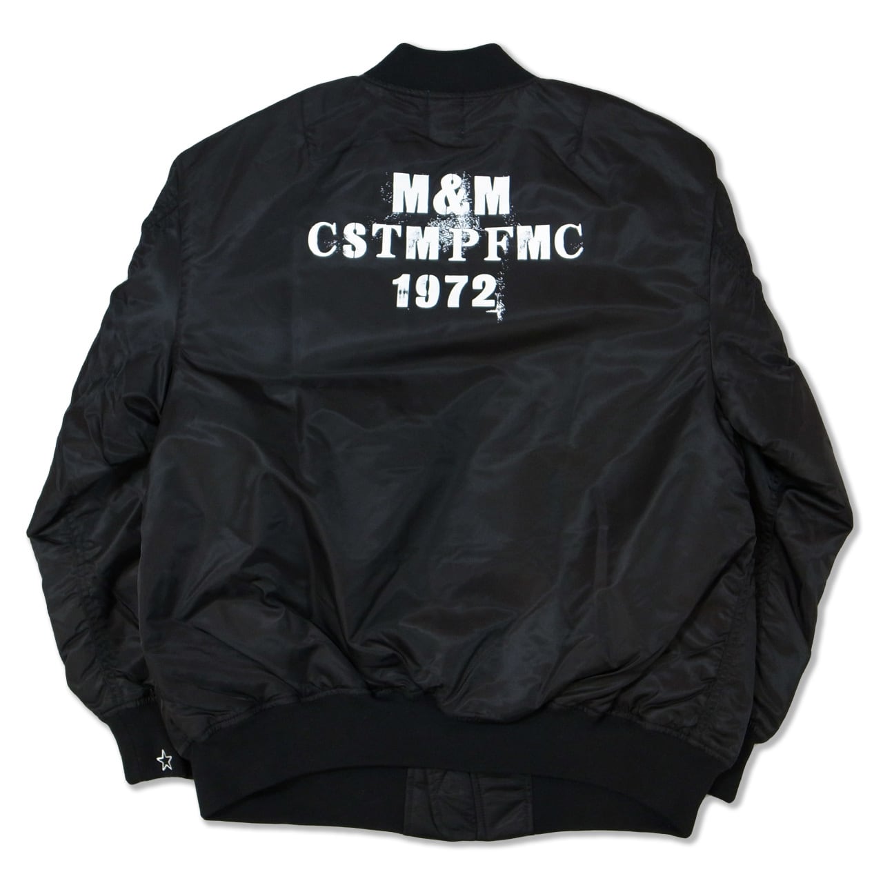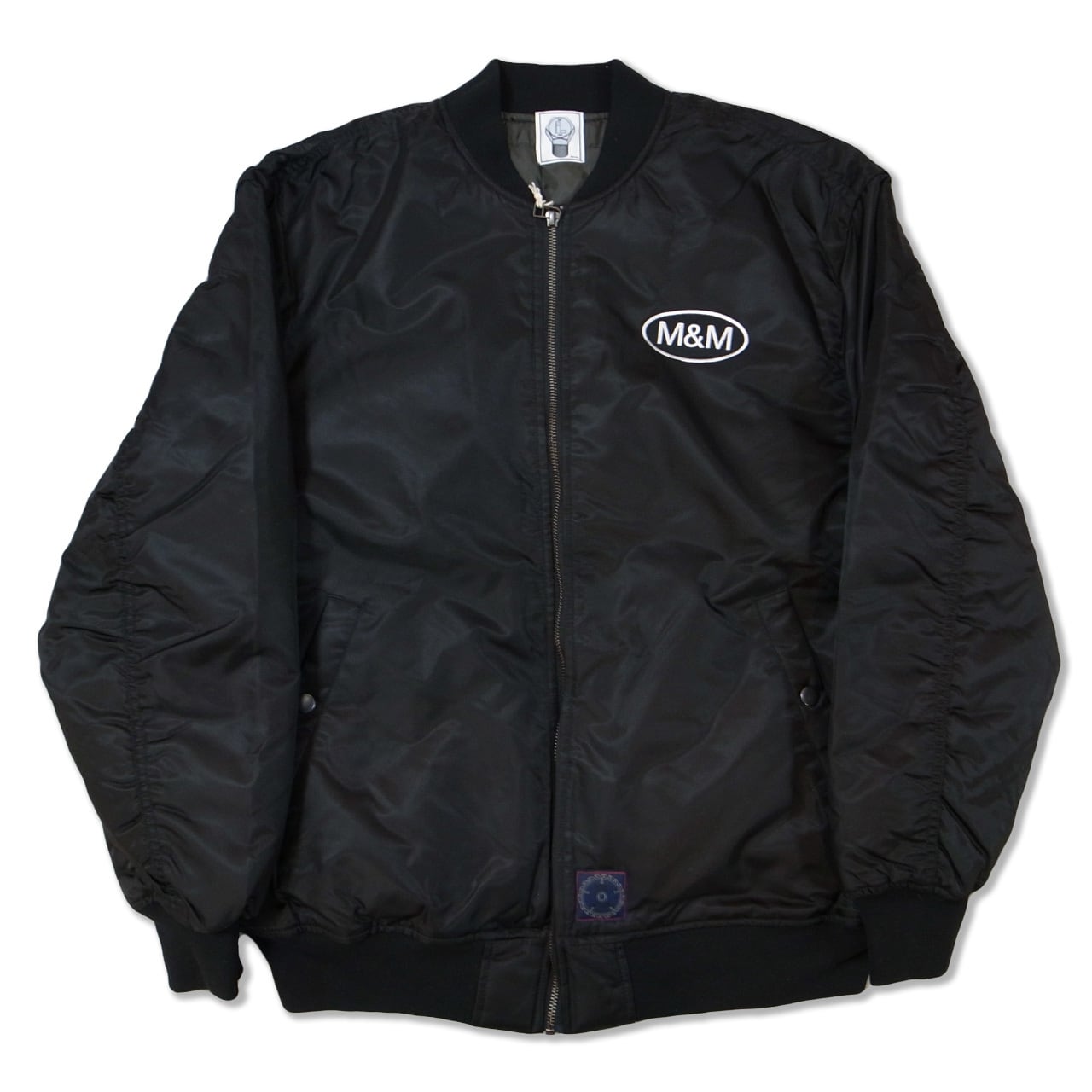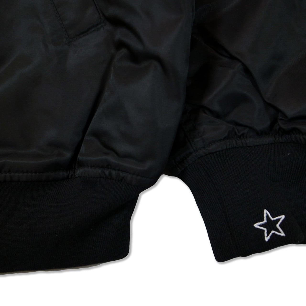 表地にボリューム感のあるナイロンを使用した、中綿入りフライトジャケット。フロントにはロゴワッペンを配置し、バックにはステンシル調のロゴタイプをプリント。両袖リブにも☆フチ刺繍を施したデザイン。着まわし易いアイテムです。