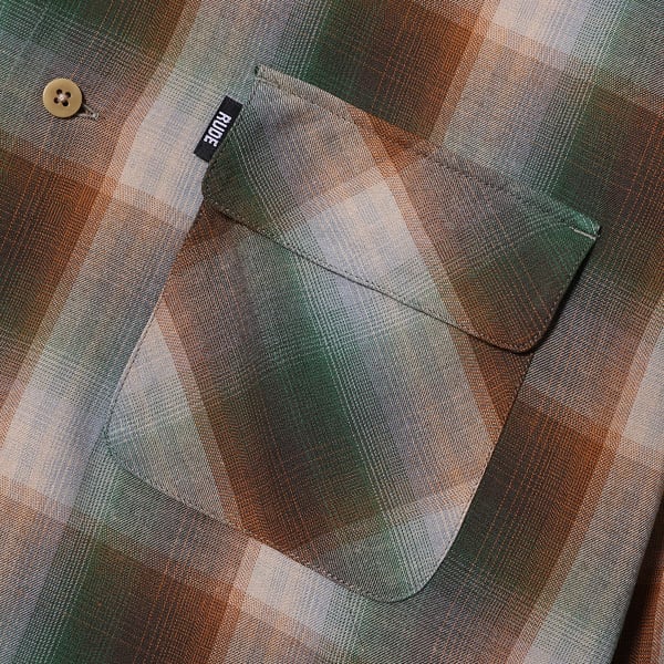 RUDE GALLERY : OMBRE CHECK OPEN COLLAR LS SHIRT