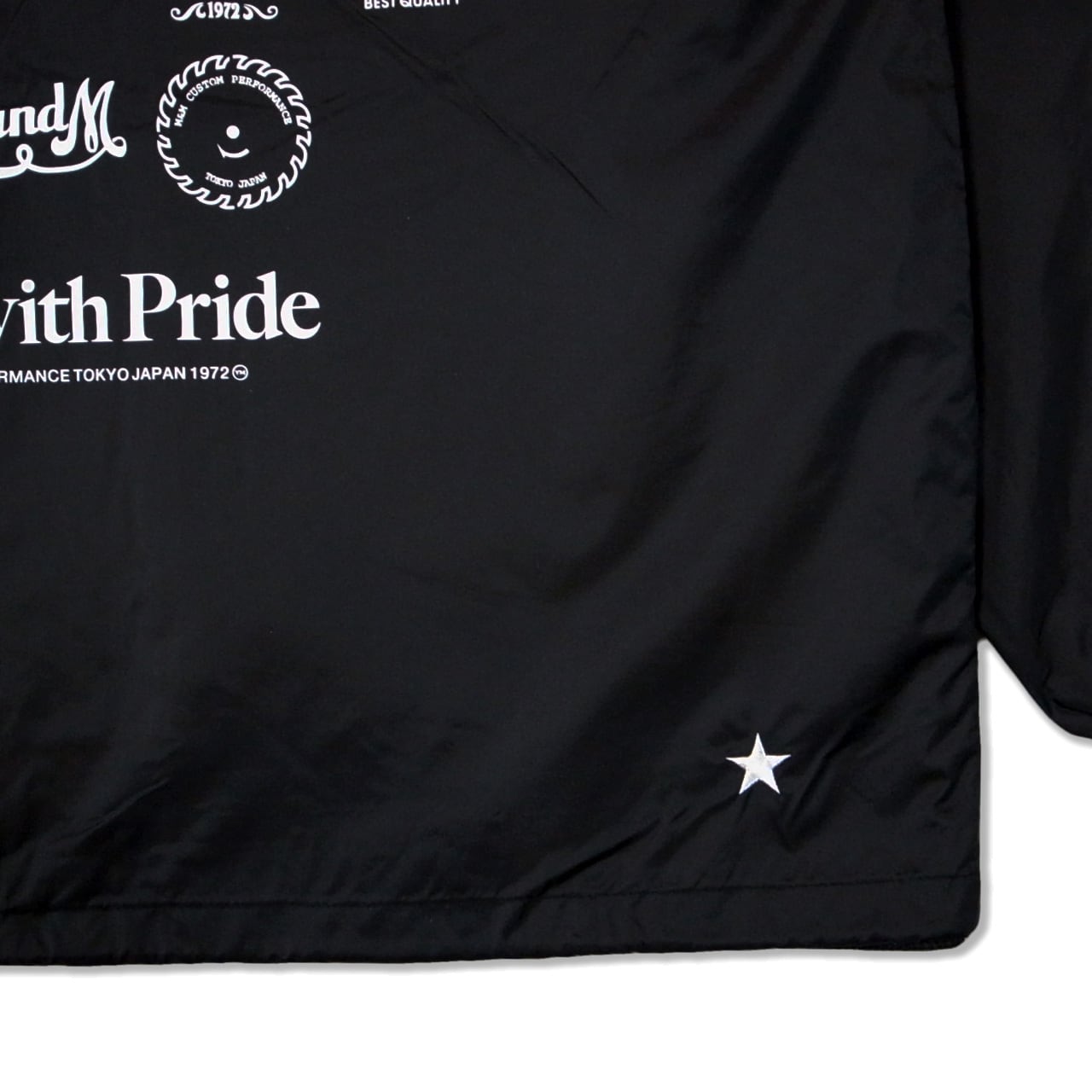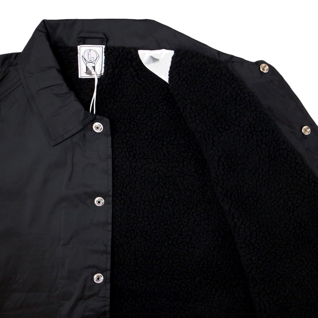 裏地にはクラシカルで保温性の高いシェルパライニング(ボア)を採用。フロント・バックにロゴプリント、後ろ裾に★刺繍をあしらった、冬の定番として着まわせるコーチジャケット。