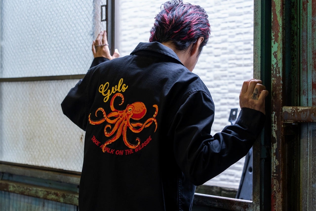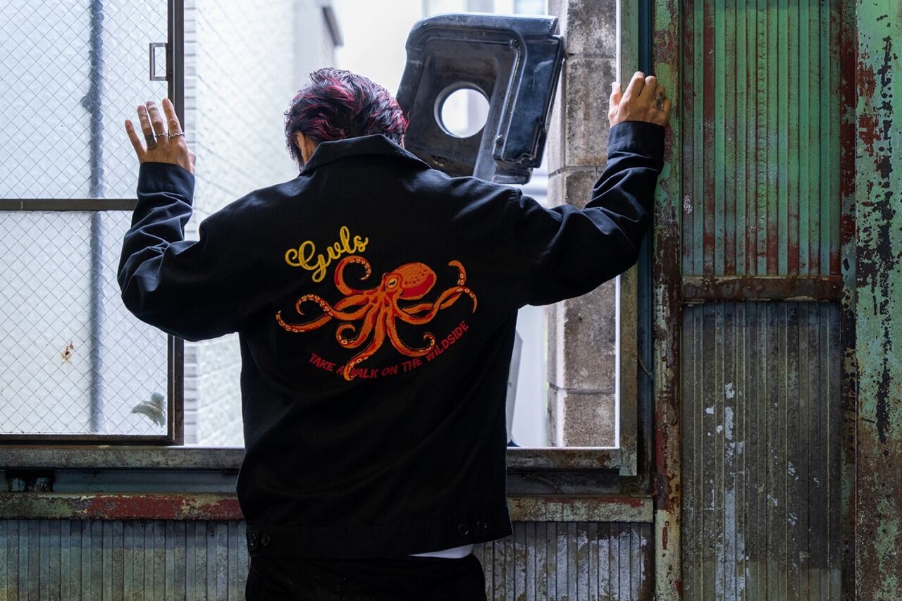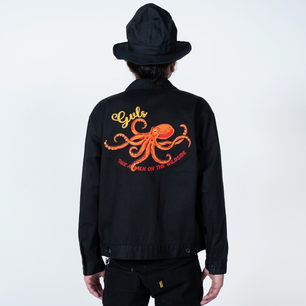 コットンツイルを使用したワークテイストのブルゾン。バックにGVLSのアイコンのひとつであるタコの刺繍が施される。*製品洗い済の為、寸法に多少の誤差が生じています。目安にお願いします。