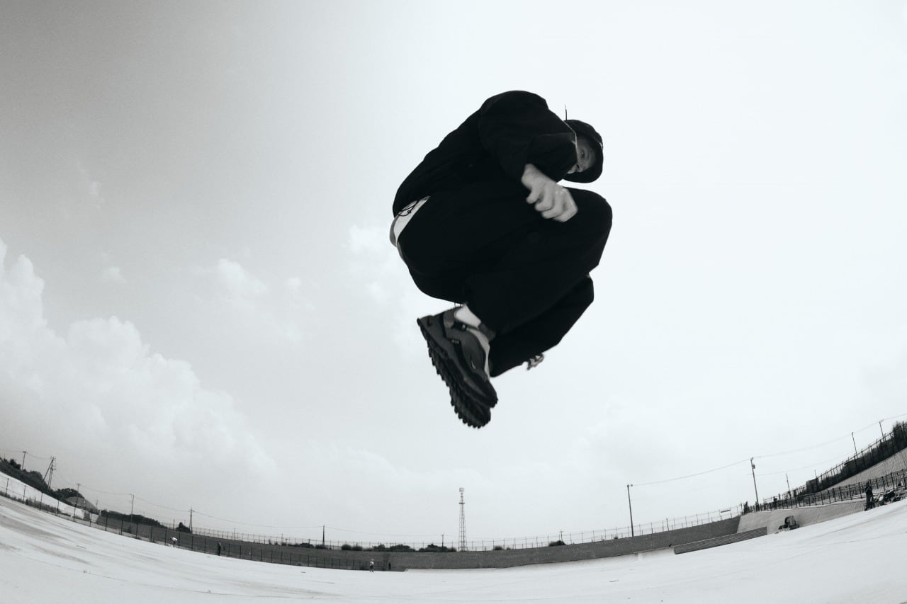 配色豊かな切り替えが流行った80s~90sにあったスポーツブランドによるトラックパンツを、テクニカルなデザインと 都会的なGREY、BLACKで現代的に再構築。立体的かつハリがあり打ち込みの良いナイロン素材を使用した、軽く丈夫なリップストップ生地です。ヒップ、ワタリにゆとりを持たせながらも、裾巾を少し細くする事でトータルで絶妙なバランスを感じるシルエットに仕上がっています。
