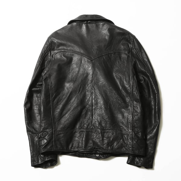 STEERHIDEを体に馴染みやすい様、1.1mm厚に削ぎ、その後水染め加工を施し、まるでヴィンテージの様な装いはRUDE GALLERYのロックスピリッツを存分にお楽しみ頂けるディティールとなっています。