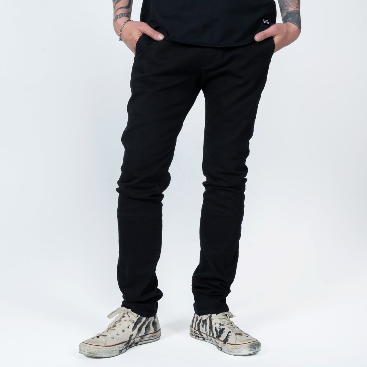 中村達也はもちろん、多くのミュージシャンがステージで愛用しているGAVIALブラックスリムパンツ。フロント膝の切り返しやバックの膝裏の切り返し。サイドポケットのディティールなど、一辺倒で似たアイテムが多くなりがちなパンツに、GAVIALらしさを加えた一本。素材にはストレッチツイルを採用して、穿きやすく動きやすい仕様です。