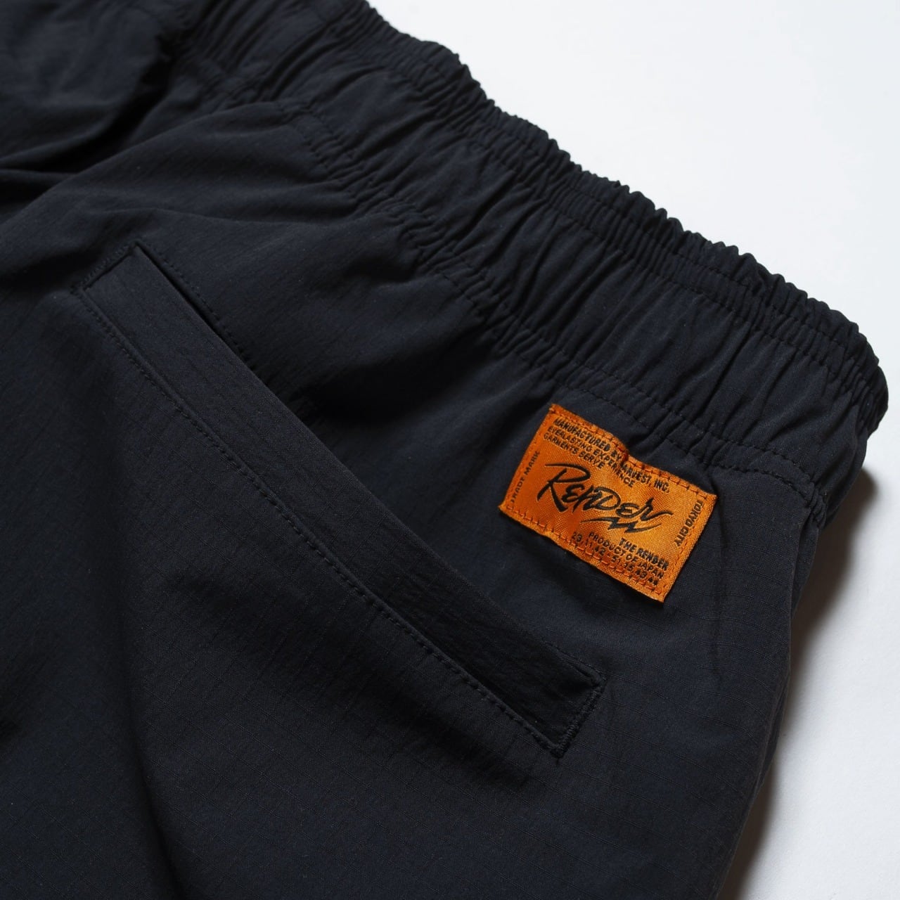 ライニングはオールメッシュで、通気性・速乾性・収縮性に優れオールシーズンに対応。ウエストはゴム+ドローストストリング仕様。裾はゴム仕様。右前パンツポケット下に「Render」の刺繍。右後パンツポケット上に「Render」のピスネーム付。左脇に「Cordura®️」のピスネーム。「RDJ963」と同素材、カラー展開でセットアップ対応。