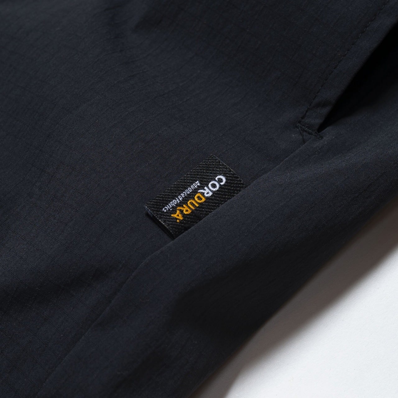 シェルにコーデュラリップストップナイロンを使用したジョガーパンツ。インビスタ社が展開するコーデュラ®️は一般的なナイロンに比べ約7倍の強度を持ち、耐久性・耐摩耗性・撥水性に優れ、アイトドア・軍事用等にも採用され、長寿命でハードユースに耐える信頼性のある素材です。
